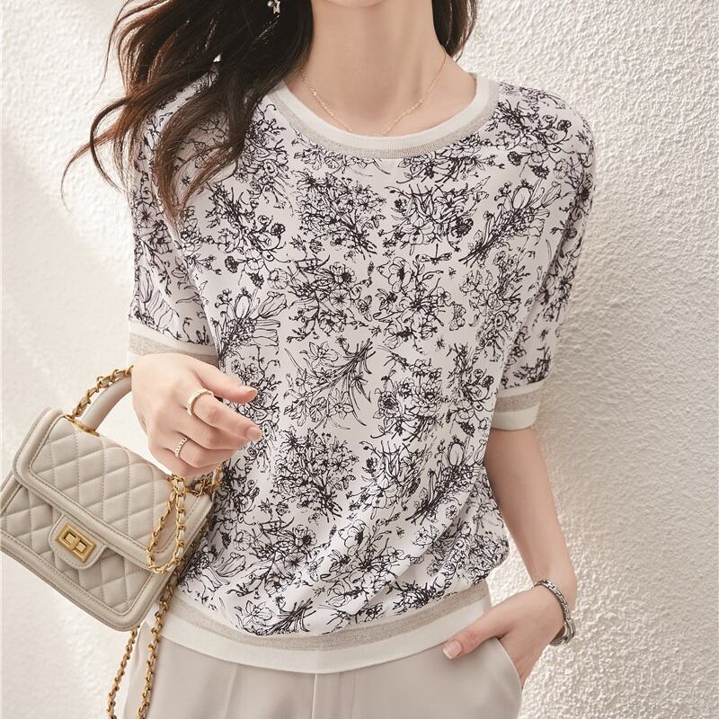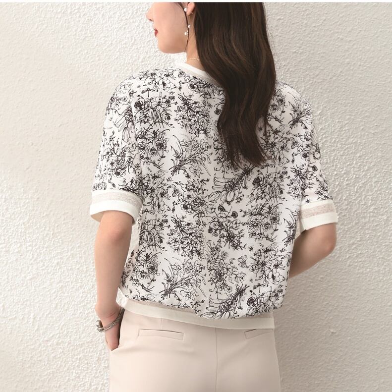 ラウンドネックが大人っぽさを引き立て、シンプルなデザインが上品さを演出します。