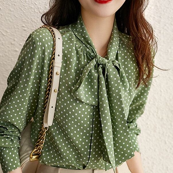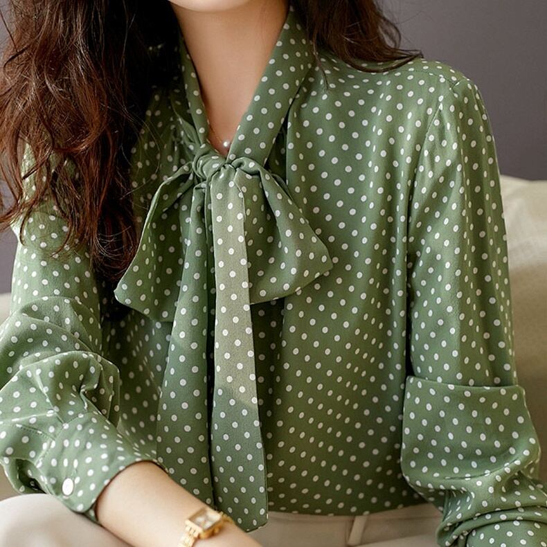 トップス シャツ シフォンシャツ ミディアム丈 長袖 シフォン リボン かわいい 大人可愛い きれいめ シンプル 上品 おしゃれ かっこいい レトロ きちんと こなれ感 個性的 主役級 存在感 抜け感 オールシーズン ナチュラル ベーシック キュート フォーマル エレガント ドット柄 レディース 女性用 ママ OL 通勤 オフィス 学生 通学 デート お出かけ お泊まり イベント 女子会 休日 アウトドア カフェ ショッピング レストラン コンパ レイヤード 重ね着 普段使い 着回し S M L XL