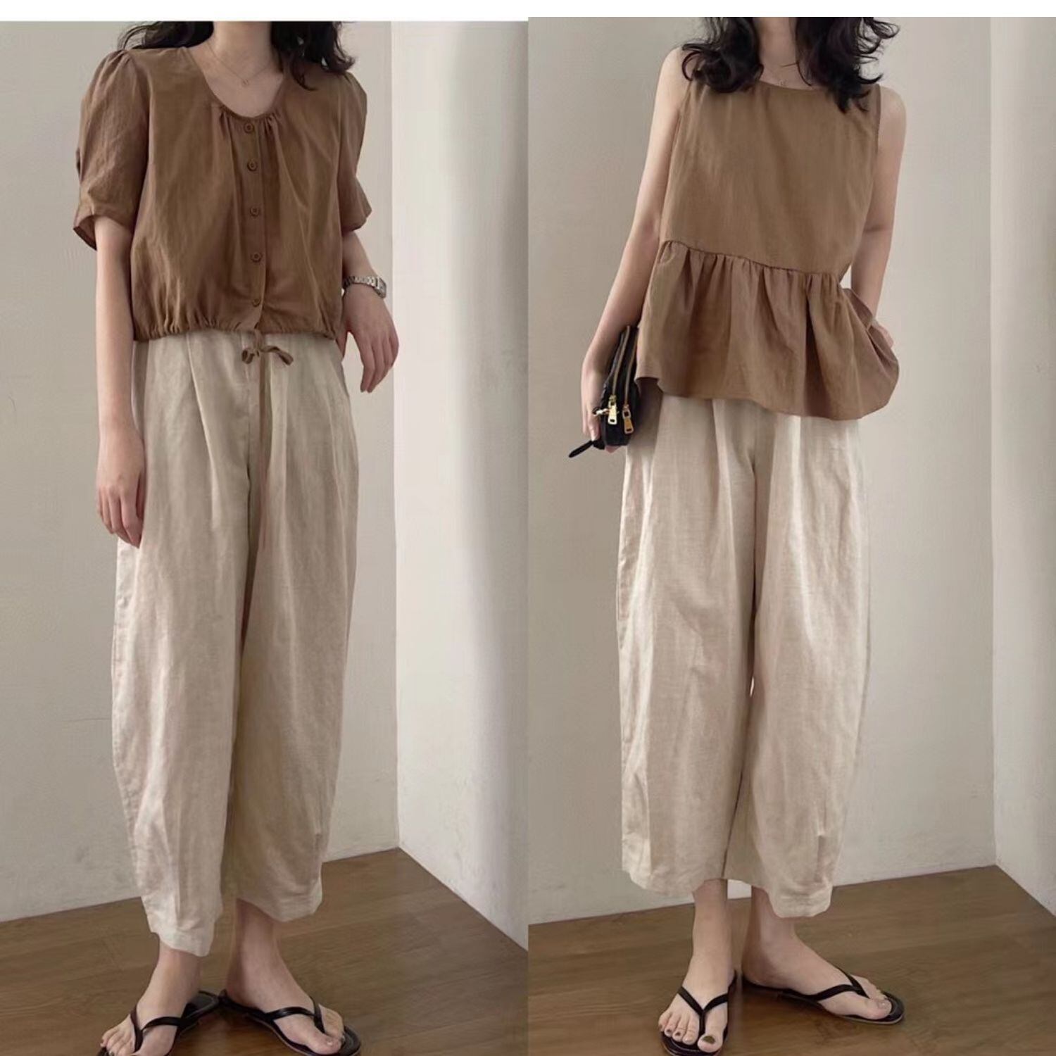 自然体で品の良さをまとう、ナチュラルスタイルが人気のレディース トップス パンツ カットソー セットアップ。シンプルでありながらキュートさと上品さを兼ね備えたこのセットは、大人可愛い雰囲気が漂います。ノースリーブのトップスに、フェミニンなペプラムデザインが施されたカットソーと、スタイリッシュなワイドパンツが織り成す組み合わせは、主役級の存在感を放ちます。