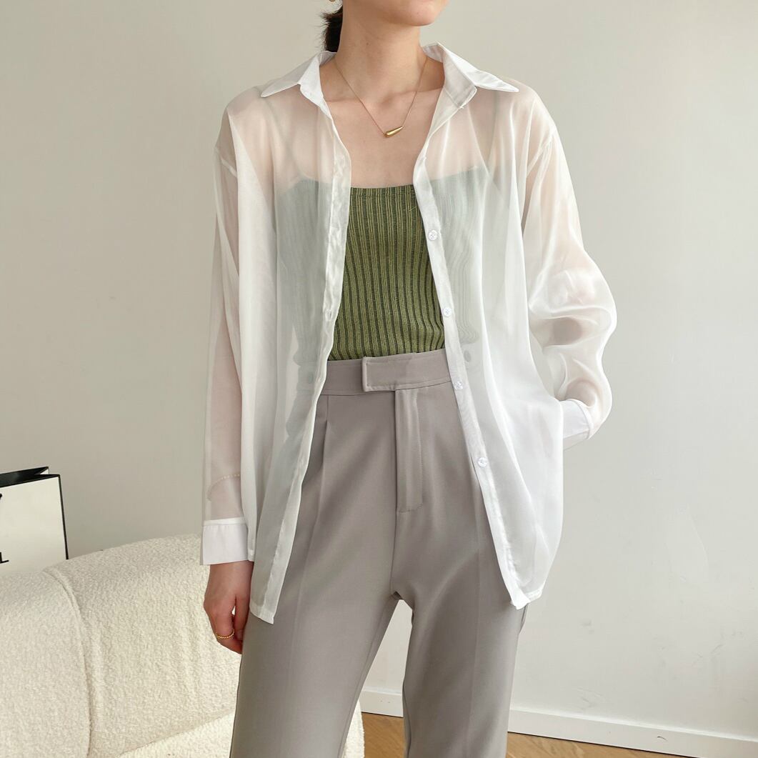 レディース トップス シャツ ブラウス ミディアム丈 袖あり 長袖 襟付き ポケット 前開き 透け感 シースルー かわいい 大人可愛い きれいめ シンプル カジュアル 上品 おしゃれ お洒落 レトロ 大人女子 こなれ感 ラフ ラブリー キュート ガーリー 個性的 クール モード系 エレガント モダン 主役級 存在感 抜け感 レディース デート お出かけ 女子会 休日 着回し 普段使い ファッション コーデ スタイル モテ プレゼント 定番 トレンド インスタ映え 色展開