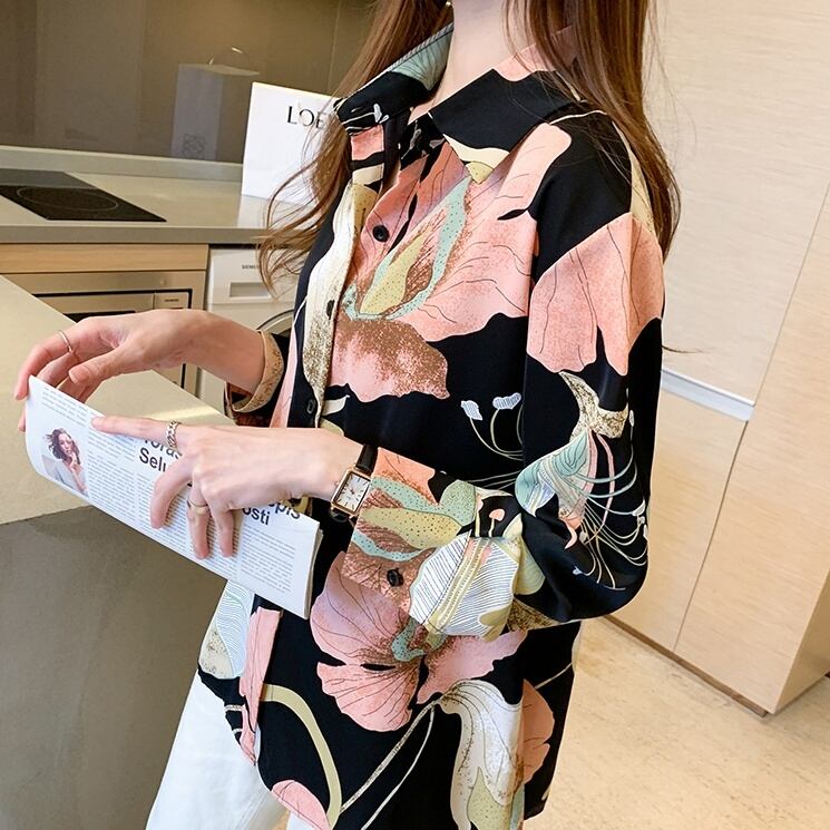 トップス シャツ ミディアム丈 長袖 角襟 前開き ボタン かわいい 大人可愛い きれいめ シンプル 上品 おしゃれ かっこいい レトロ きちんと こなれ感 個性的 主役級 存在感 抜け感 オールシーズン ナチュラル ベーシック キュート フォーマル エレガント 花柄 レディース 女性用 ママ OL 通勤 オフィス 学生 通学 デート お出かけ お泊まり イベント 女子会 休日 アウトドア カフェ ショッピング レストラン コンパ レイヤード 重ね着 普段使い 着回し S M L XLトレンド モテ