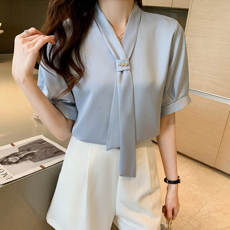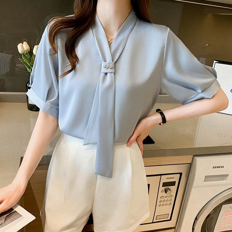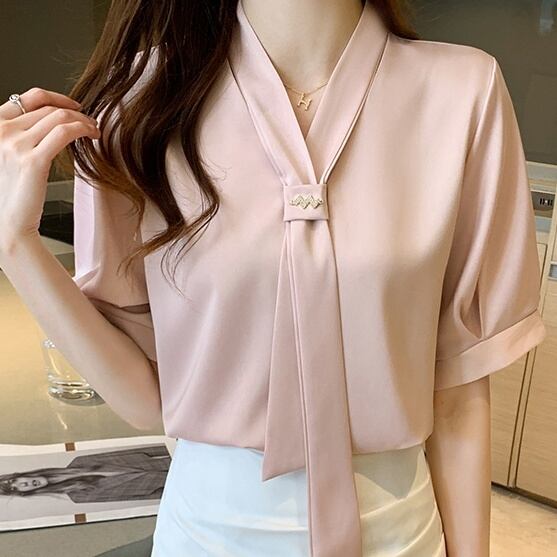 トップス シャツ シフォンシャツ ミディアム丈 半袖 ボウタイ シフォン かわいい 大人可愛い きれいめ シンプル 上品 おしゃれ かっこいい レトロ きちんと こなれ感 個性的 主役級 存在感 抜け感 オールシーズン ナチュラル ベーシック キュート フォーマル エレガント 無地 レディース 女性用 ママ OL 通勤 オフィス 学生 通学 デート お出かけ お泊まり イベント 女子会 休日 アウトドア カフェ ショッピング レストラン コンパ レイヤード 重ね着 普段使い 着回し S M L 2XL