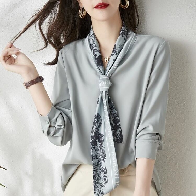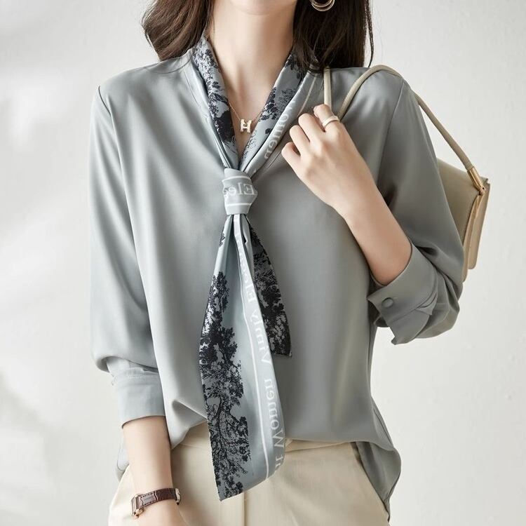 柔らかなシフォン素材と上品な刺繍が魅力のシャツです。
