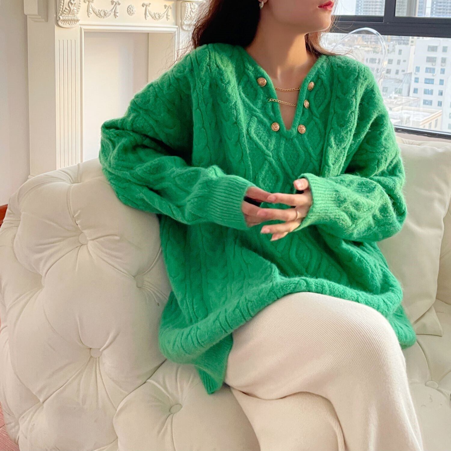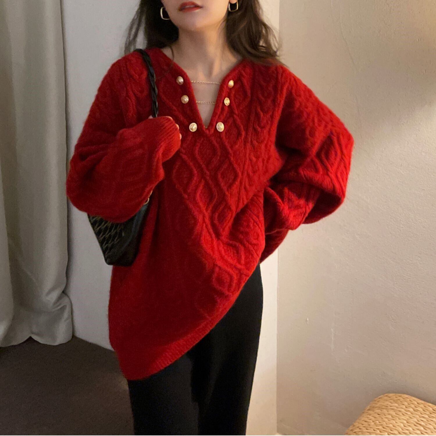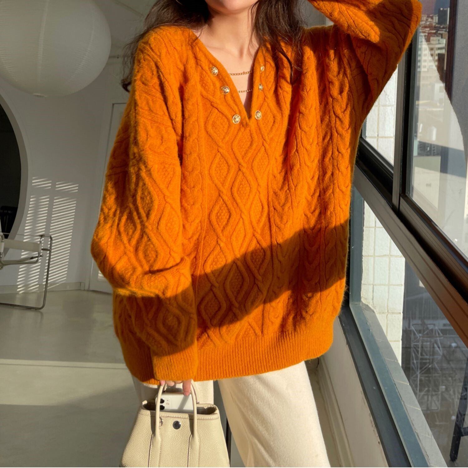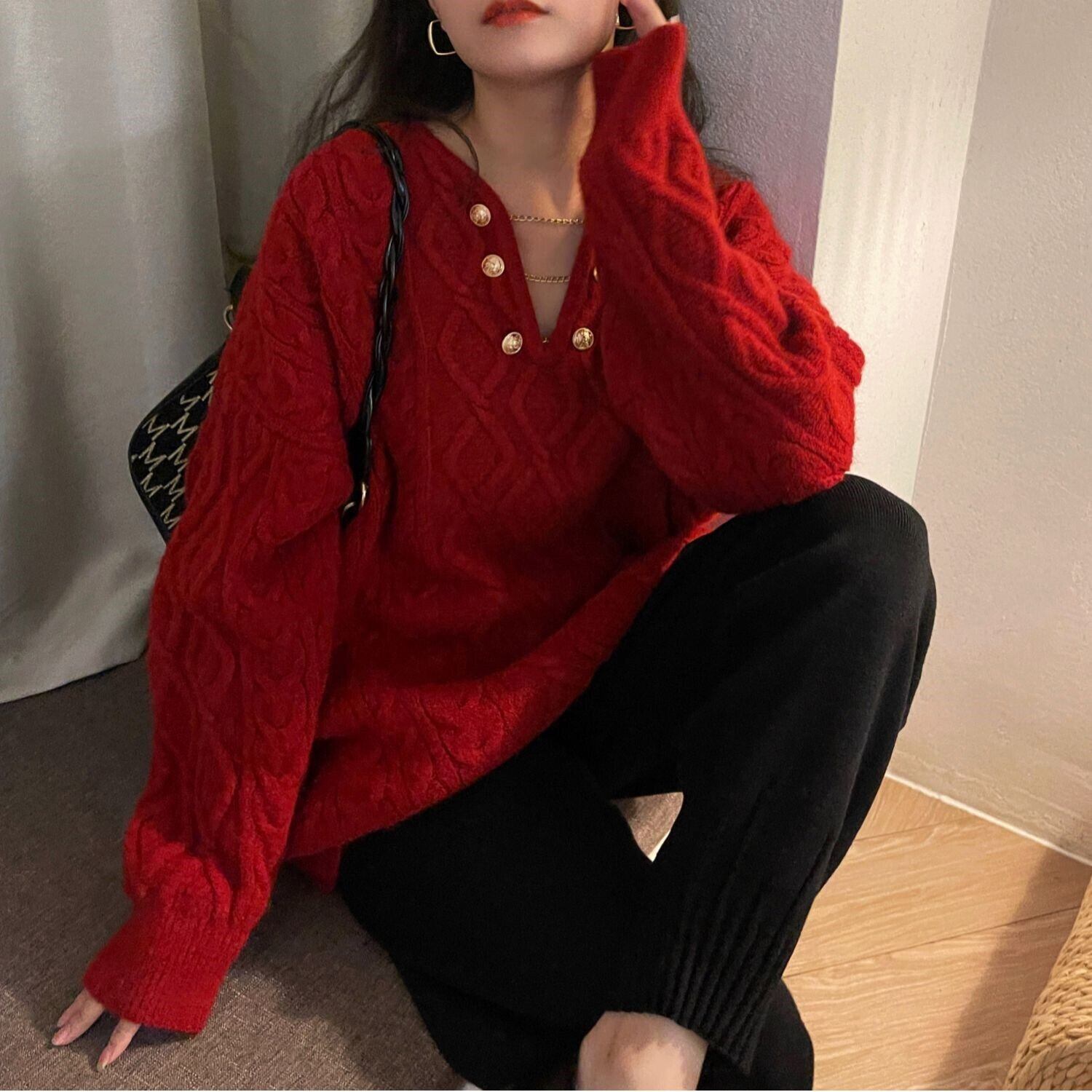 レディース トップス ニット セーター プルオーバー 長袖 Vネック ストレート オーバーサイズ ボタン かわいい 大人可愛い きれいめ シンプル カジュアル おしゃれ レトロ ラフ ガーリー ルーズ ラブリー キュート 無地 秋 冬 通勤 学生 学校 通学 デート お出かけ 女子会 ショッピング カフェ 韓国 コーデ 楽ちん 暖かい 脚長 普段使い 着回し モテ トレンド 流行 インスタ映え S M L ゆったり ホワイト ピンク オレンジ レッド ライトブルー グリーン