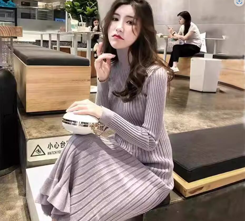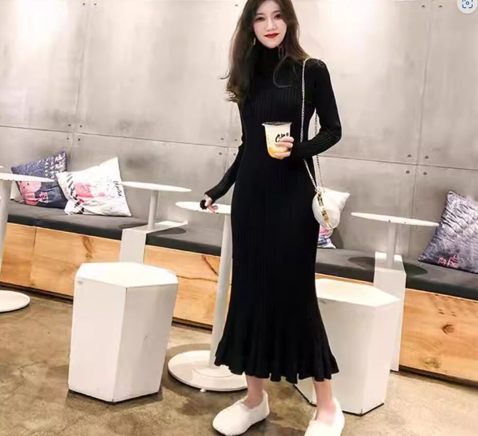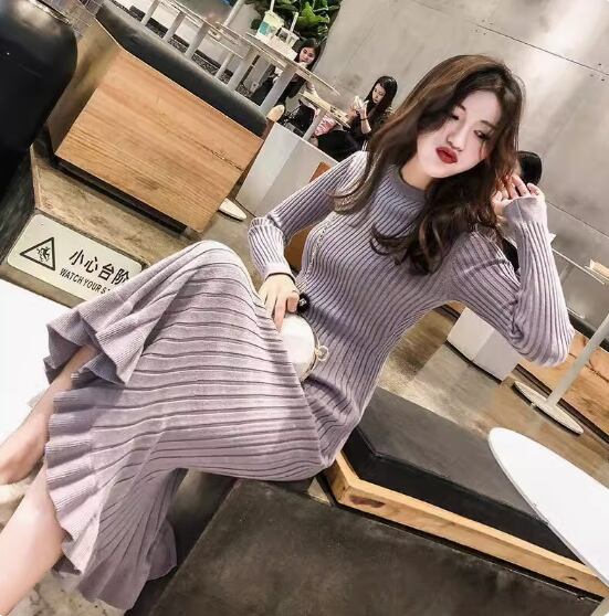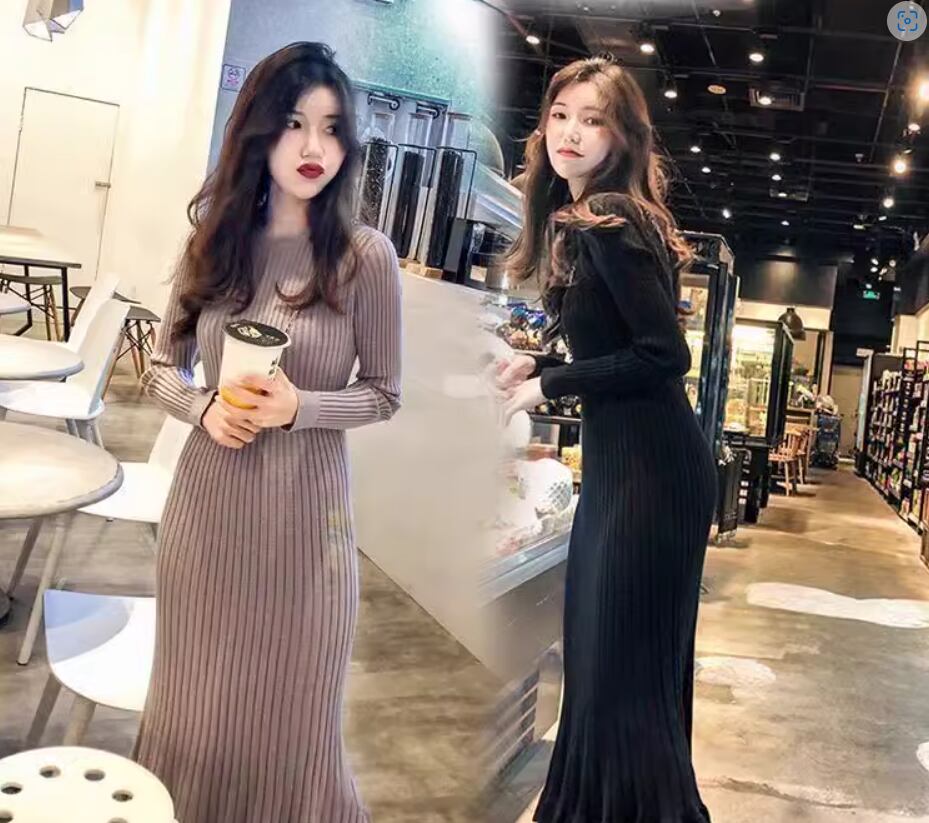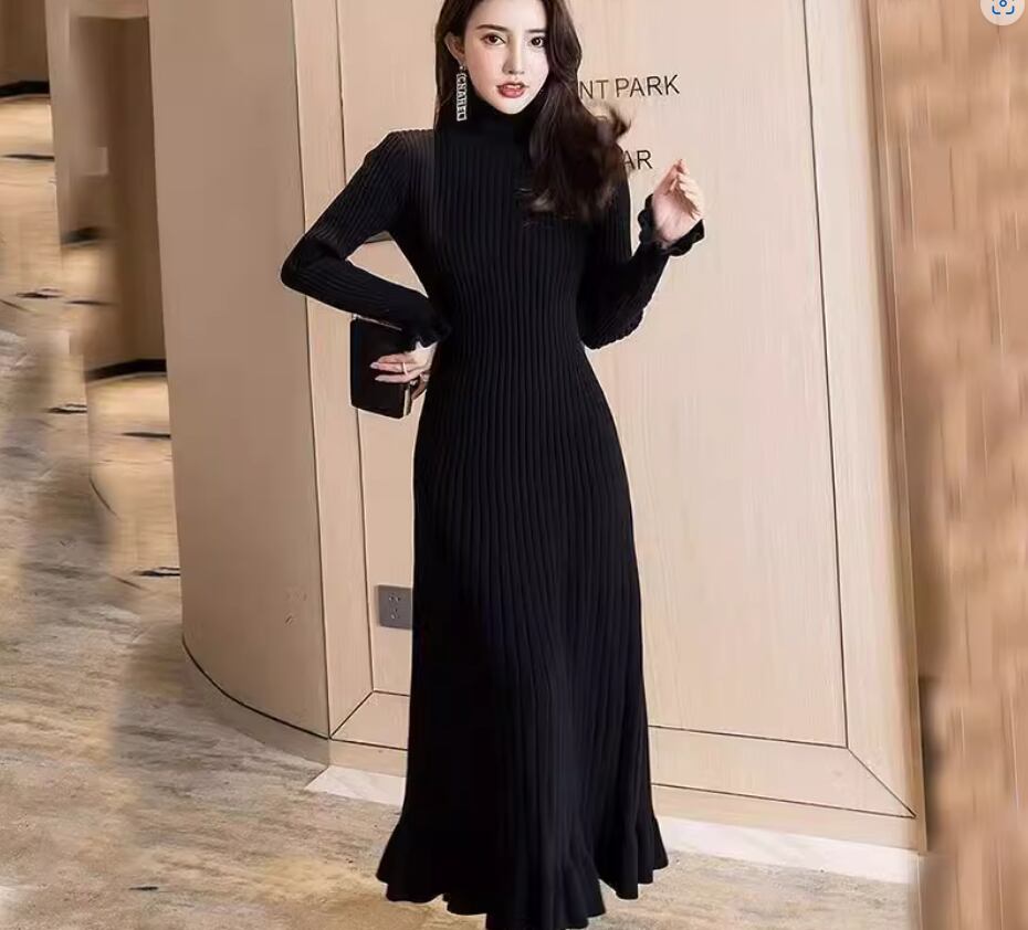 ワンピース ニットワンピース ミディアム丈 袖あり 長袖 ラウンドネック Aライン リブニット 伸縮性 ニット きれいめ シンプル 大人 上品 おしゃれ お洒落 こなれ感 エレガント 無地 秋 冬 20代 30代 40代 レディース 女性用 ママ お出かけ 休日 着回し 普段使い 楽ちん S M L XL 黒 ブラック 青 ブルー アプリコット スモークパープル バーガンディ