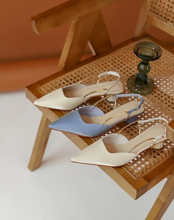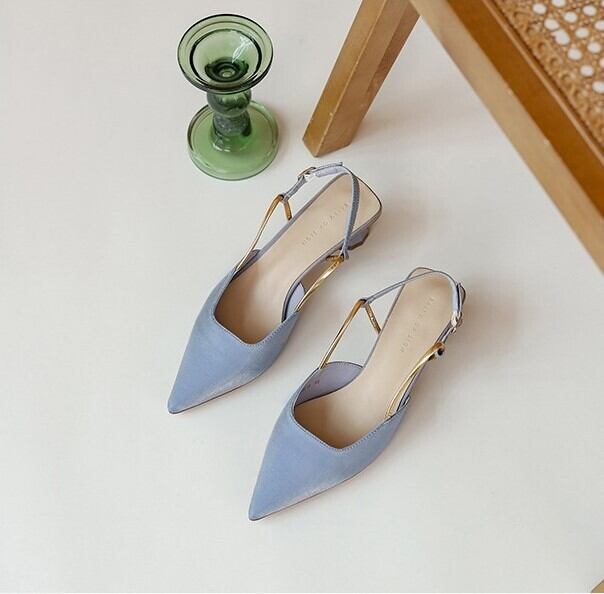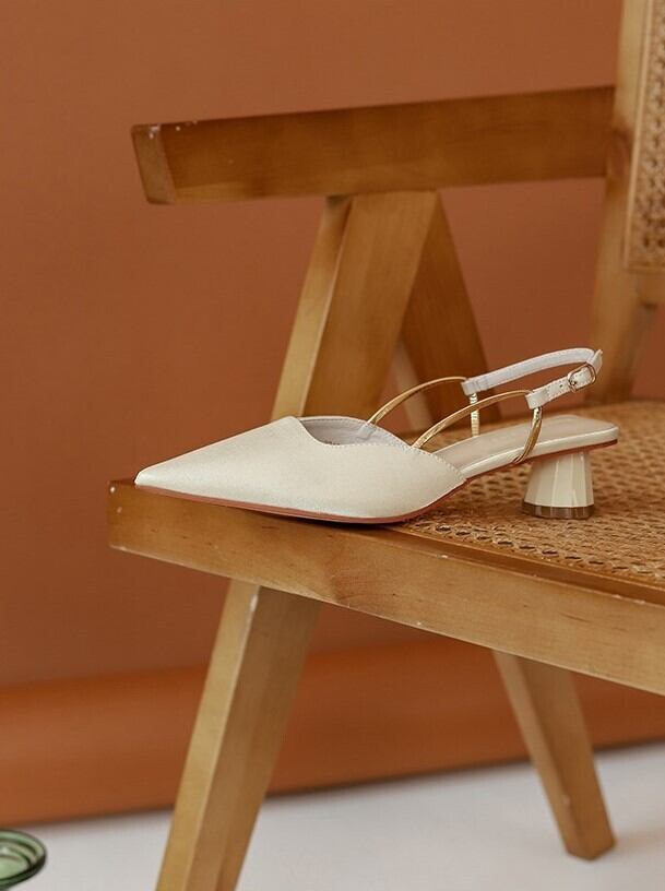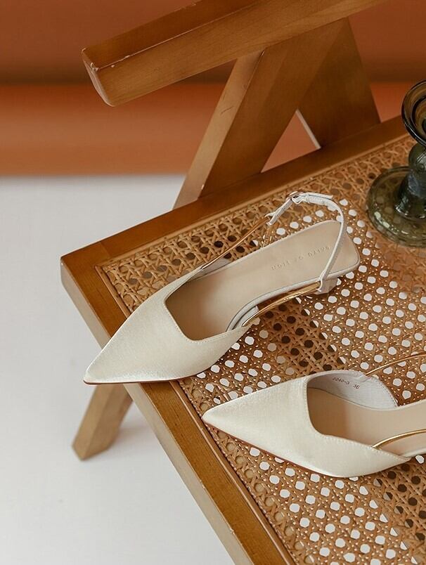 ローヒール設計で歩きやすいと同時に、ポインテッドトゥが足元を美しく見せてくれます。