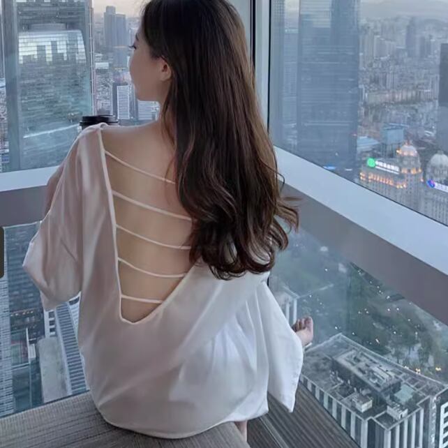 ボリューム袖やドロップショルダー、Vネック、サイドスリットなど、トレンド要素も満載。特に背中の大きな開きはセクシーさを演出し、リゾートや海、プール、ビーチなどの旅行先や休日のデートにおすすめです。