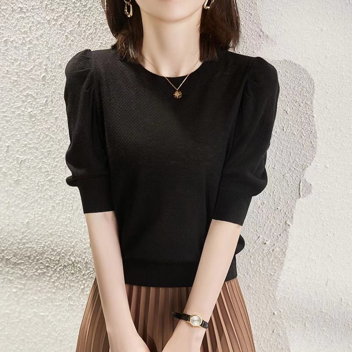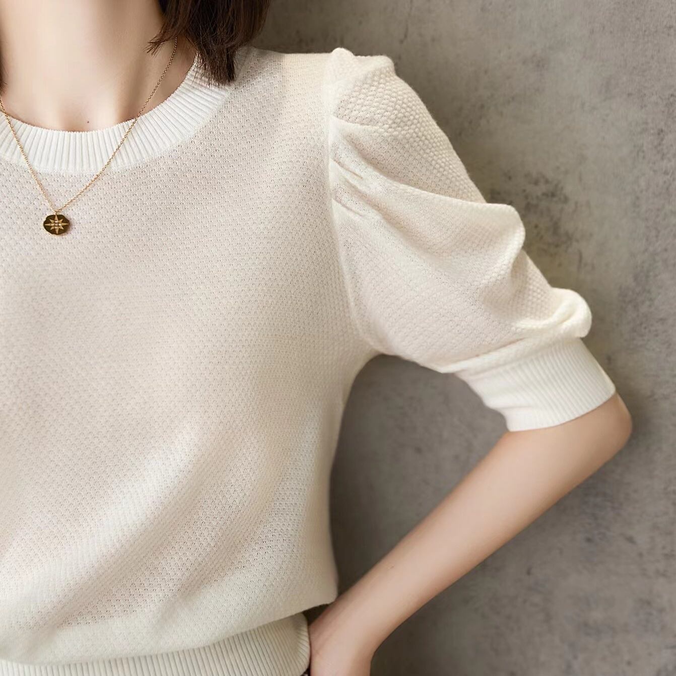 トップス セーター プルオーバー ミディアム丈 半袖 ラウンドネック ウエストマーク かわいい 大人可愛い きれいめ シンプル 上品 おしゃれ かっこいい レトロ きちんと こなれ感 個性的 主役級 存在感 抜け感 オールシーズン キュート ナチュラル ベーシック フォーマル 無地 レディース 女性用 ママ OL 通勤 オフィス 学生 通学 デート お出かけ お泊まり イベント 女子会 休日 アウトドア カフェ ショッピング レストラン コンパ レイヤード 重ね着 普段使い 着回し M L XL