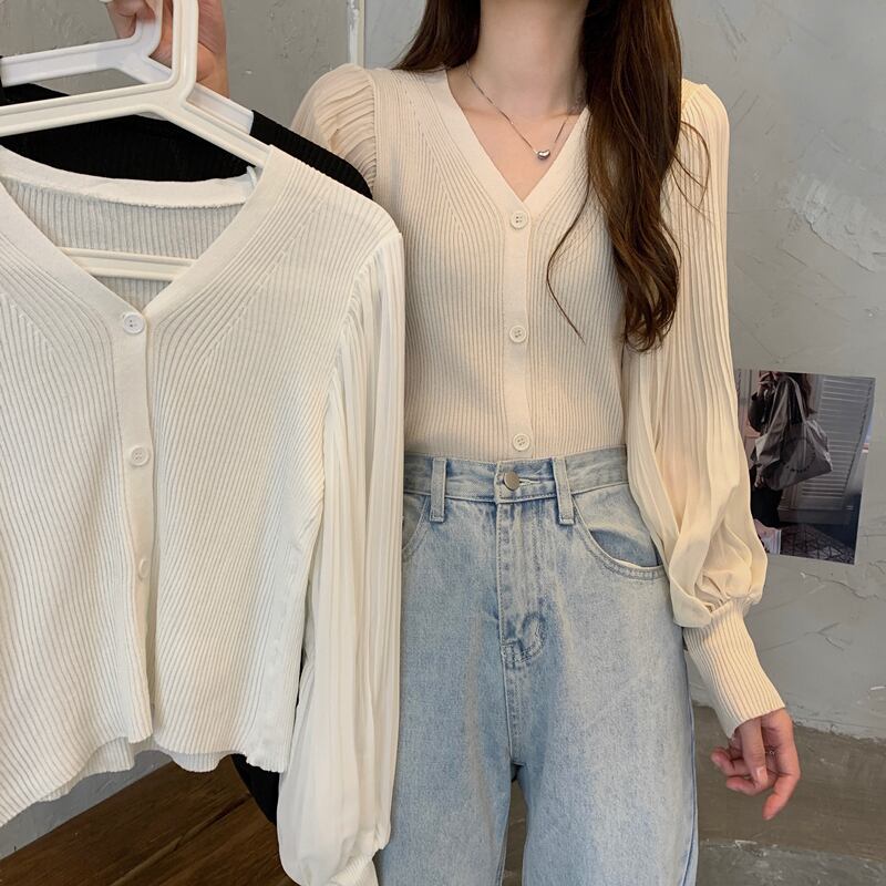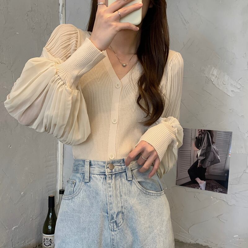 トップス カーディガン ミディアム丈 Vネック 長袖 ボリューム袖 前開き ボタン かわいい 大人可愛い きれいめ シンプル 上品 おしゃれ かっこいい レトロ きちんと こなれ感 個性的 主役級 存在感 抜け感 オールシーズン キュート ナチュラル ベーシック フォーマル ガーリー 無地 レディース 女性用 ママ OL 通勤 オフィス 学生 通学 デート お出かけ お泊まり イベント 女子会 休日 アウトドア カフェ ショッピング レストラン コンパ レイヤード 重ね着 普段使い 着回し ワンサイズ
