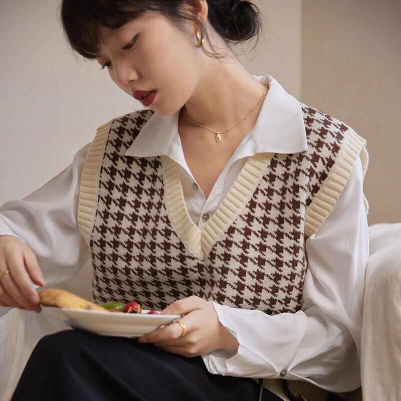 トップス ベスト ニットベスト プルオーバー ショート丈 Vネック かわいい 大人可愛い きれいめ シンプル 上品 おしゃれ かっこいい レトロ きちんと こなれ感 個性的 主役級 存在感 抜け感 秋 冬 ナチュラル ベーシック キュート メンズライク 千鳥格子柄 レディース 女性用 ママ OL 通勤 オフィス 学生 通学 デート お出かけ お泊まり イベント 女子会 休日 アウトドア カフェ ショッピング レストラン コンパ レイヤード 重ね着 普段使い 着回し デイリー S M トレンド 定番アイテム