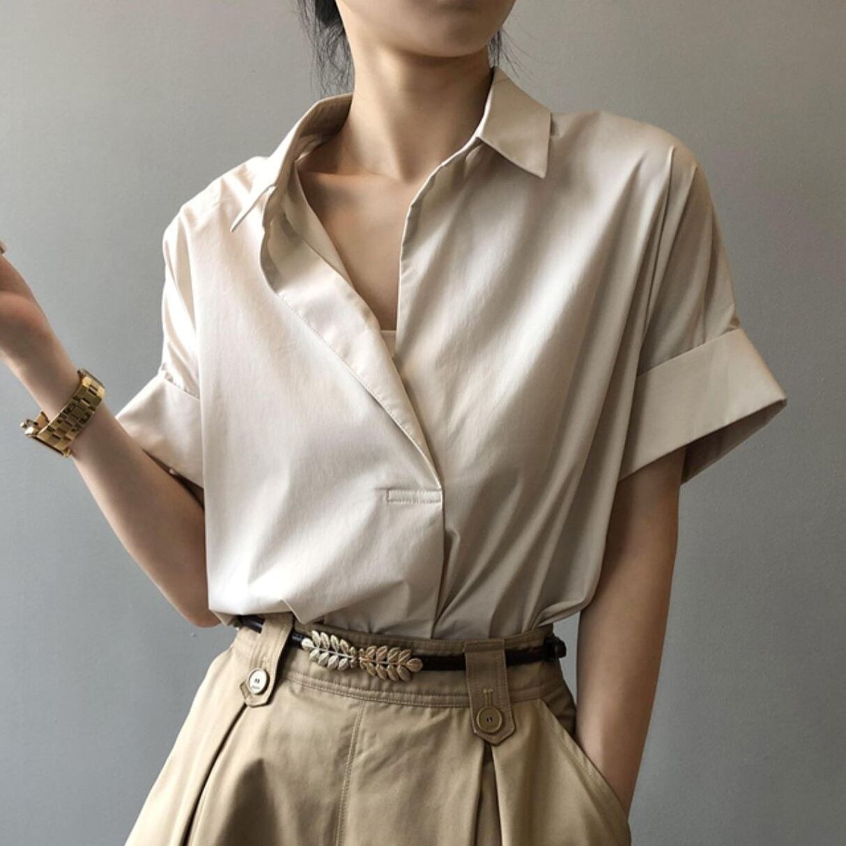 トップス シャツ プルオーバー ミディアム丈 半袖 角襟 かわいい 大人可愛い きれいめ シンプル 上品 おしゃれ かっこいい レトロ きちんと こなれ感 個性的 主役級 存在感 抜け感 オールシーズン キュート ナチュラル ベーシック メンズライク フォーマル 無地 レディース 女性用 ママ OL 通勤 オフィス 学生 通学 デート お出かけ お泊まり イベント 女子会 休日 アウトドア カフェ ショッピング レストラン コンパ レイヤード 重ね着 普段使い 着回し M L 定番アイテム トレンド