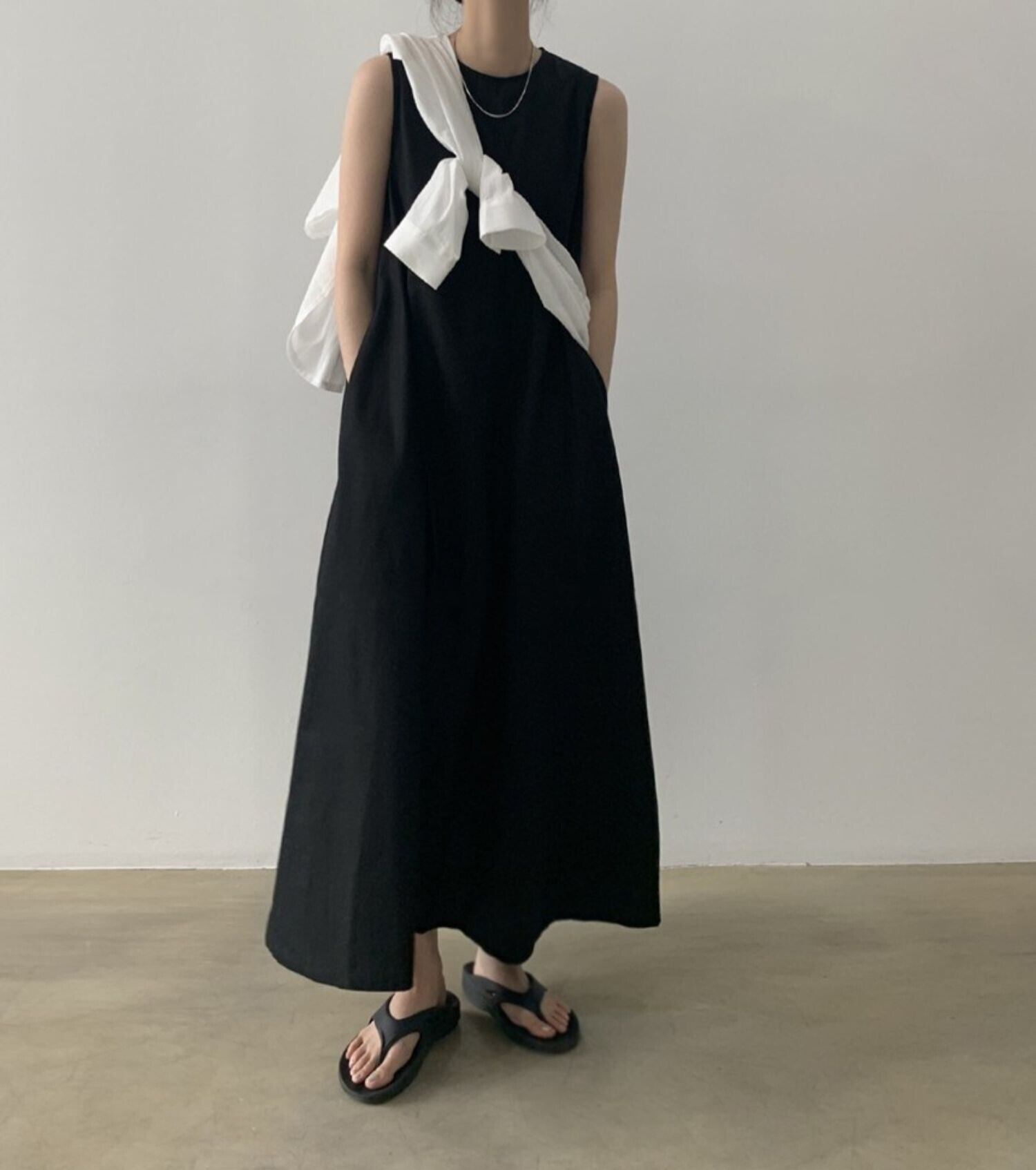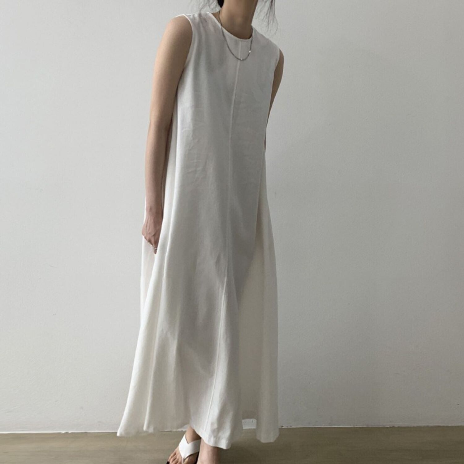 ワンピース レディース マキシ 袖なし ノースリーブ ラウンドネック ワイド フレア Aライン 切り替え 裾ワイド ふわふわ ポケット リネン かわいい 大人可愛い シンプル カジュアル 上品 おしゃれ こなれ感 ラフ ルーズ 存在感 都会的 ラグジュアリー ベーシック ナチュラル 無地 春 夏 ママ デート お出かけ リゾート 旅行 海 プール レストラン ビーチ 休日 高原 ホテル ガーデン ショッピング ランチ会 体型カバー 普段使い S M L XL ゆったり ゆる 白 ホワイト 黒 ブラック