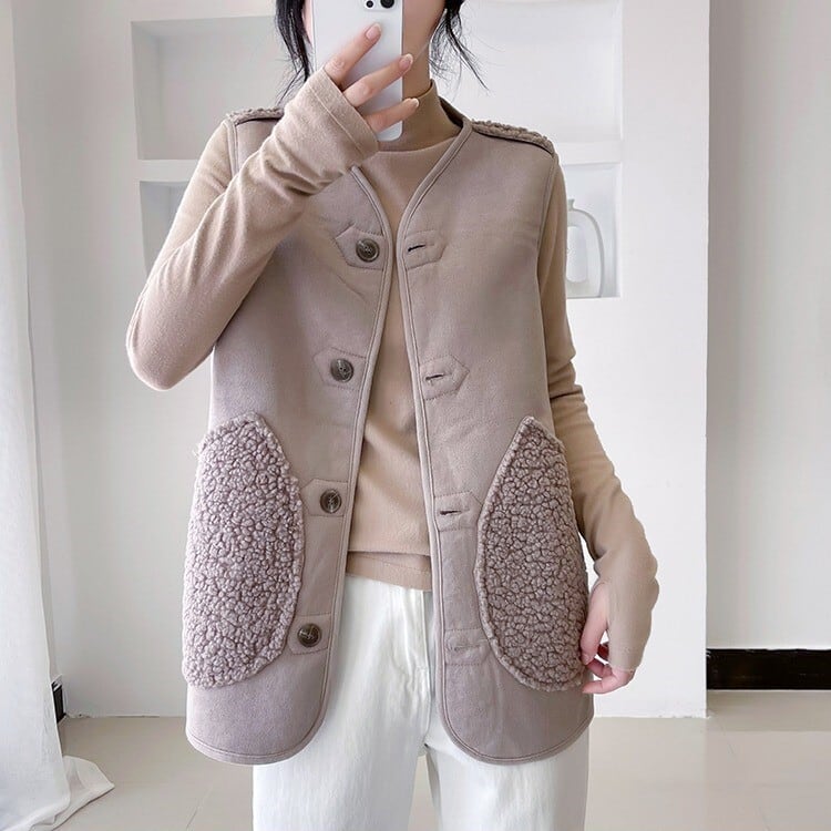 ベスト ジレ レディース 袖なし ノースリーブ Vネック ノーカラー ストレート もこもこ ふわふわ ポケット 前開き ボタン ボア かわいい 大人可愛い シンプル カジュアル おしゃれ レトロ こなれ感 ラフ ガーリー 存在感 ラブリー キュート ベーシック ナチュラル 無地 秋 冬 通勤 デート お出かけ 女子会 休日 ショッピング お花見 カフェ アースカラー 重ね着 コーデ 暖かい 体型カバー 普段使い 着回し レイヤード 定番 S M L XL ゆったり ゆる ホワイト ブラウン カーキ