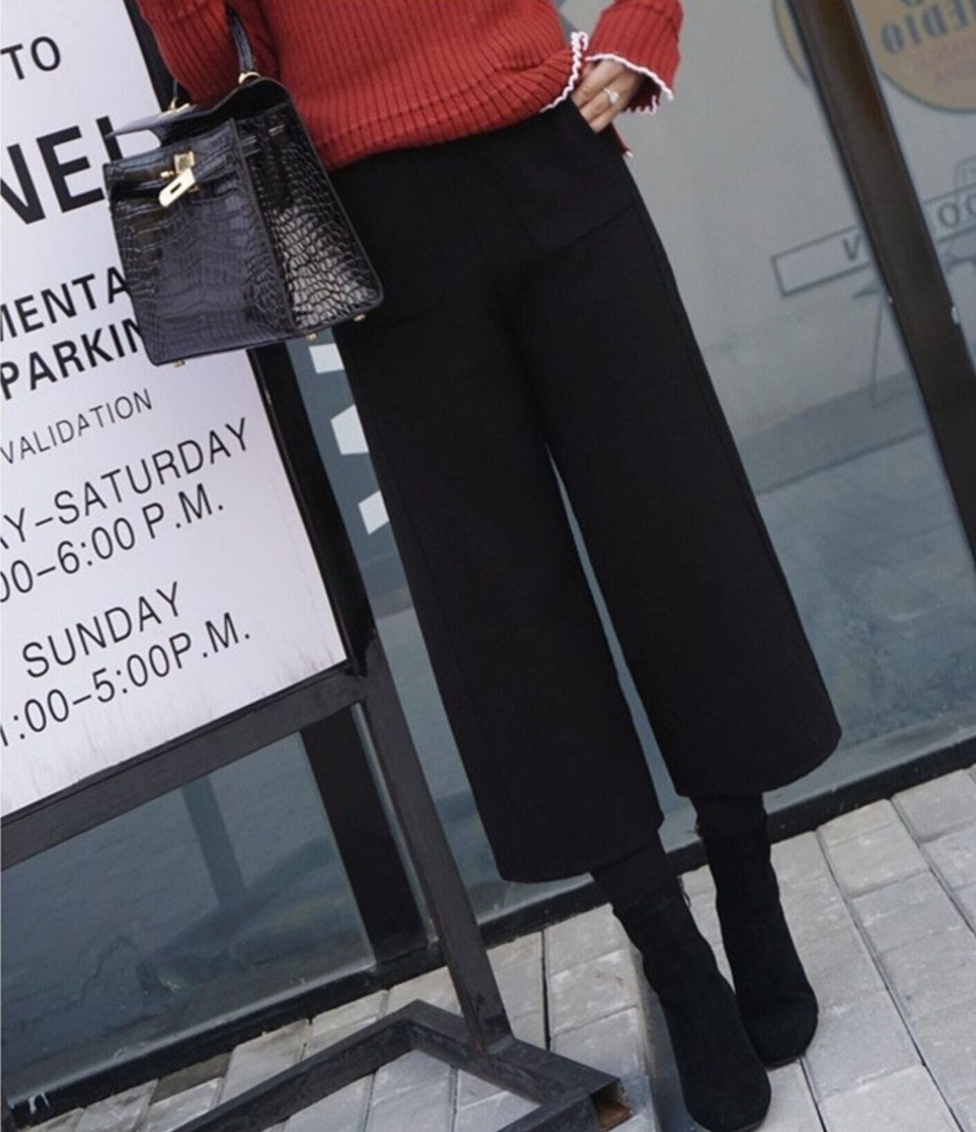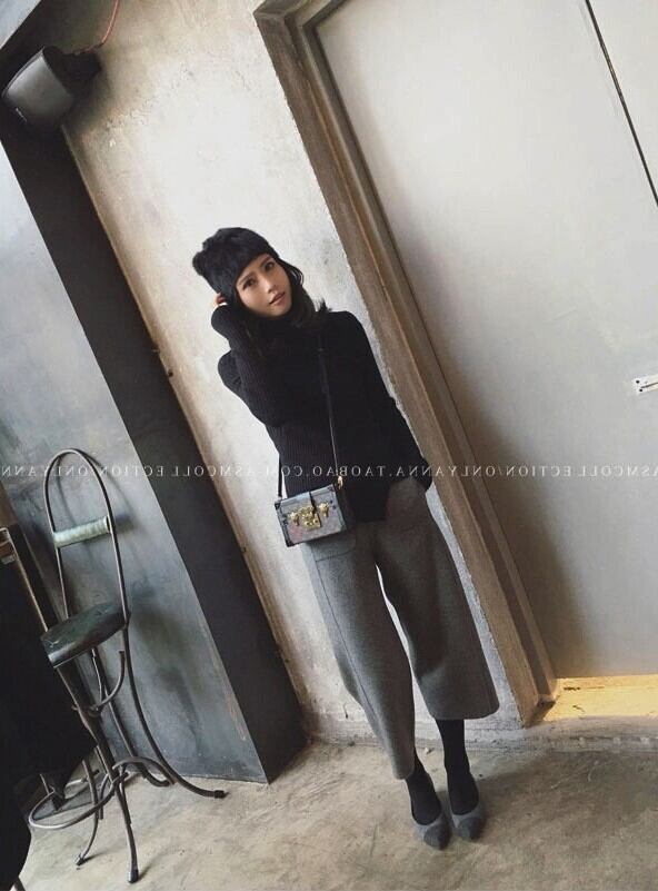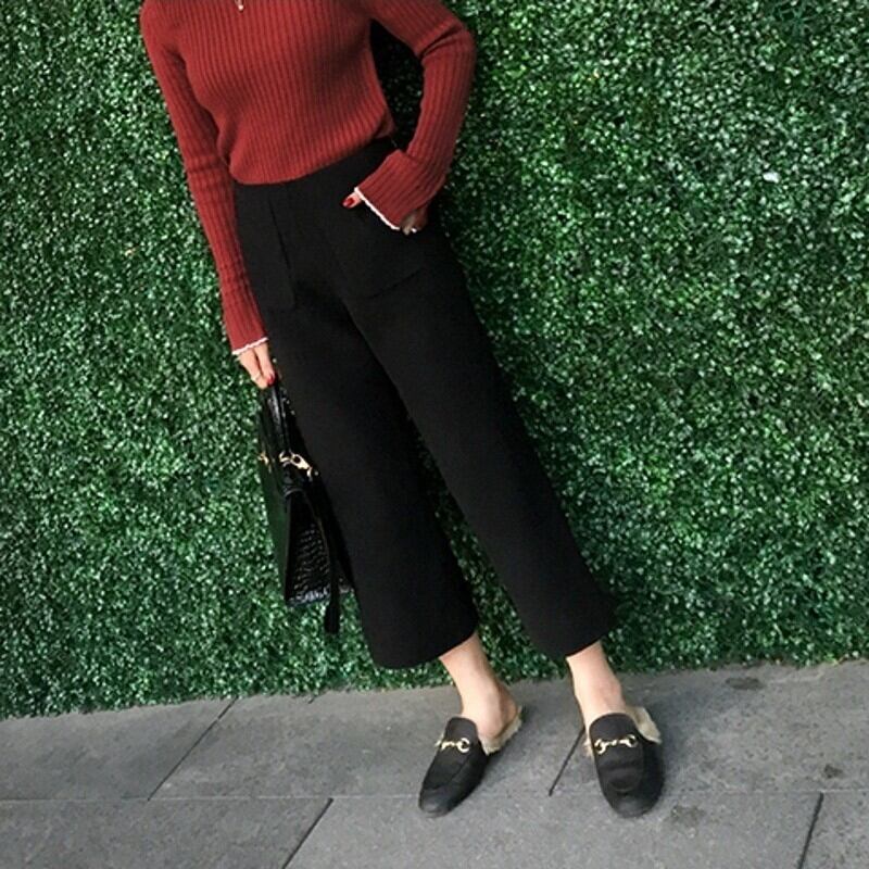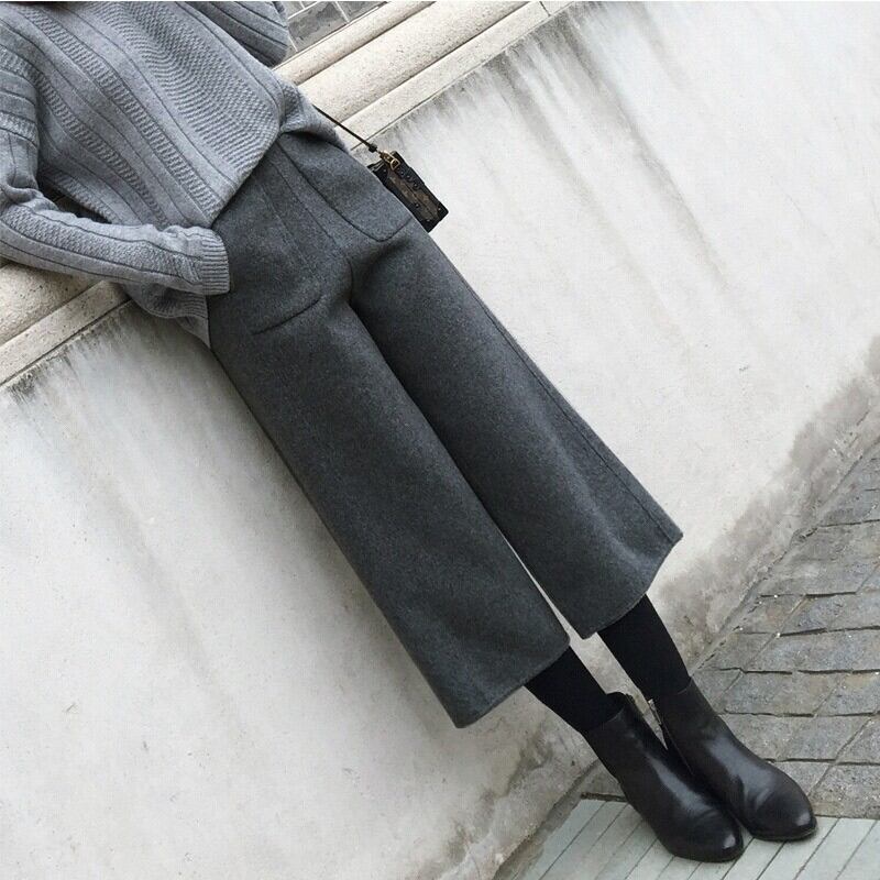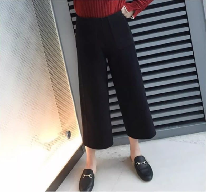 ウール地の柔らかい雰囲気が魅力のクロップドワイドパンツ。