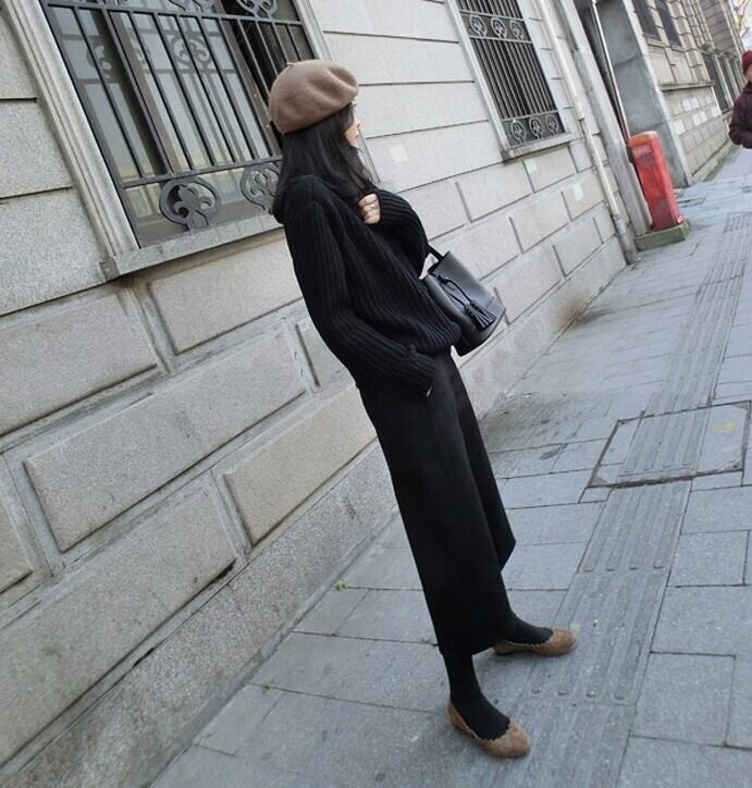 膝下丈で大人っぽい印象を与え、ハイウエストデザインで脚長効果も◎。