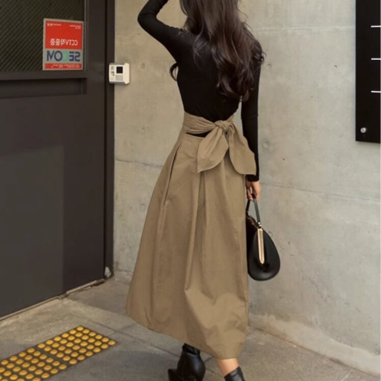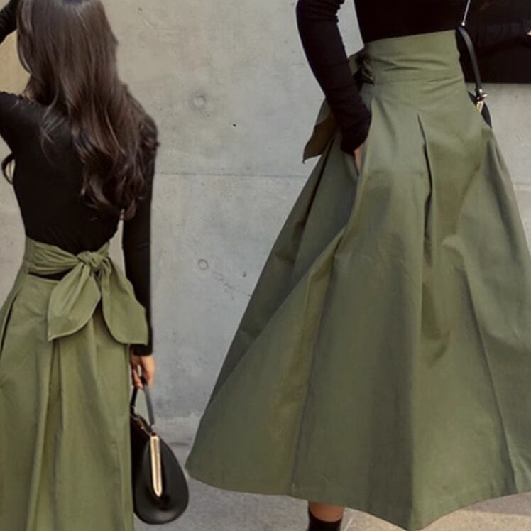 ボトムス スカート ミモレ丈スカート Aライン バックリボン ポケット ミモレ丈 かわいい 大人可愛い きれいめ シンプル カジュアル 上品 おしゃれ かっこい 大人女子 こなれ感 きちんと 個性的 主役級 存在感 オールシーズン キュート クール ナチュラル ベーシック フェミニン 無地 レディース 女性用 ママ OL 通勤 オフィス 学生 通学 デート お出かけ お泊まり イベント 女子会 休日 カフェ ショッピング レストラン コンパ 普段使い 着回し 脚長 美脚 S M L XL モテ トレンド