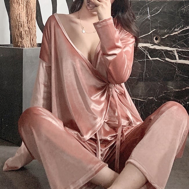 暖かみのあるベルベット素材で、上品でかわいらしい印象のパジャマセットが登場しました。