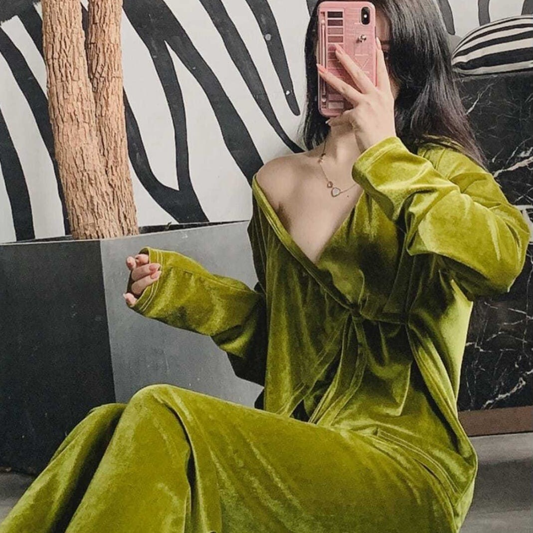 パジャマ ナイトウエア 上下セット 長袖 Vネック 前開き 長ズボン ロングパンツ ウエストゴム ベルベット かわいい 大人可愛い きれいめ シンプル 上品 おしゃれ かっこいい レトロ きちんと こなれ感 個性的 主役級 存在感 抜け感 オールシーズン ナチュラル ベーシック キュート クール セクシー ガーリー フェミニン 無地 レディース 女性用 ママ デート お出かけ お泊まり イベント 女子会 休日 ホテル アウトドア レイヤード 重ね着 普段使い 着回し M L XL トレンド モテ