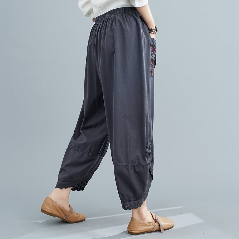 ボトムス パンツ ズボン アンクルパンツ カジュアルパンツ ウエストゴム ポケット 刺繡 かわいい 大人可愛い きれいめ シンプル カジュアル 上品 おしゃれ かっこい 大人女子 こなれ感 ラフ ルーズ 個性的 主役級 存在感 オールシーズン キュート クール ナチュラル ベーシック メンズライク 無地 レディース 女性用 ママ OL 通勤 オフィス 学生 通学 デート お出かけ お泊まり イベント 女子会 休日 カフェ ショッピング レストラン コンパ 普段使い 着回し 脚長 美脚 ワンサイズ