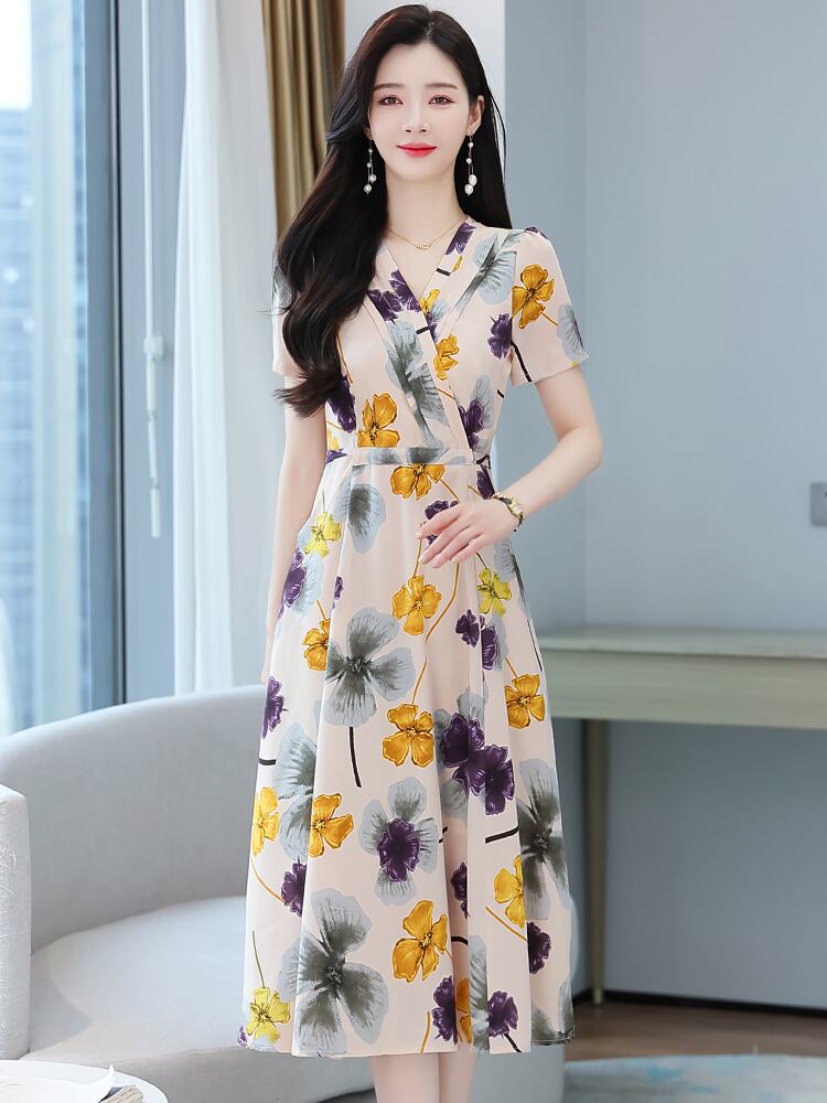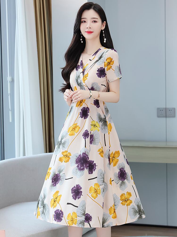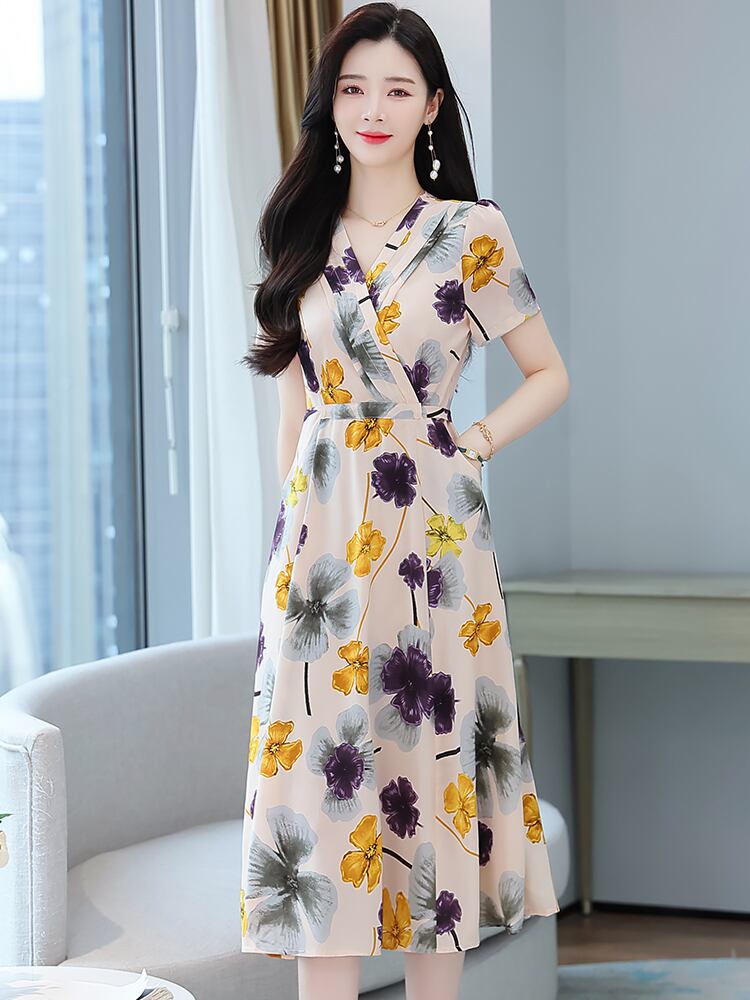 レディース ワンピース ドレス ロング 半袖 ラウンドネック スリム 細身 Aライン ポケット ハイウエスト かわいい 大人可愛い きれいめ シンプル カジュアル 上品 おしゃれ レトロ ガーリー エレガント キュート フラワー 夏 ママ デート お出かけ パーティー イベント リゾート レストラン 女子会 ショッピング 韓国 コーデ 普段使い 着回し モテ トレンド 流行 インスタ映え XL 2XL 3XL 4XL 5XL 大きいサイズ クリーム