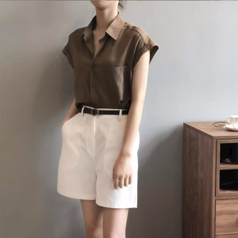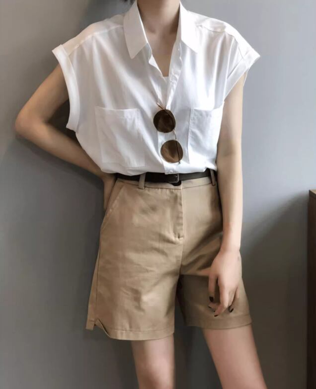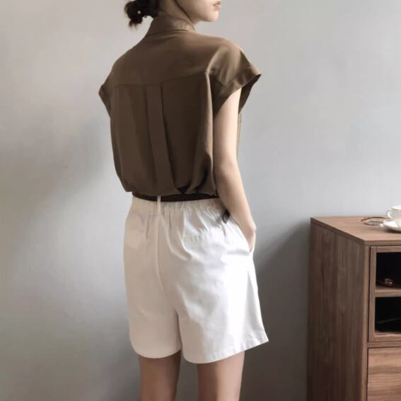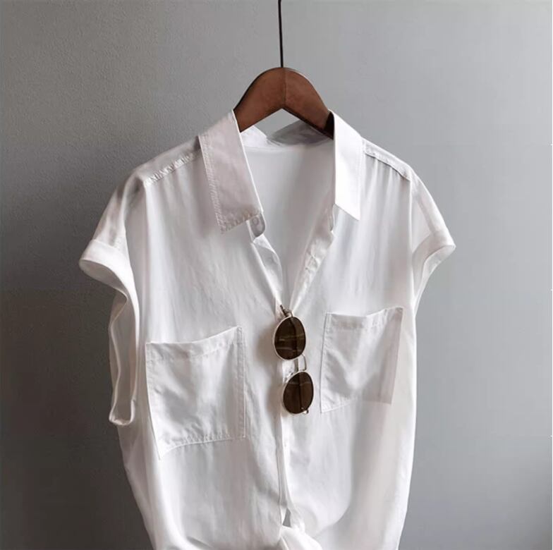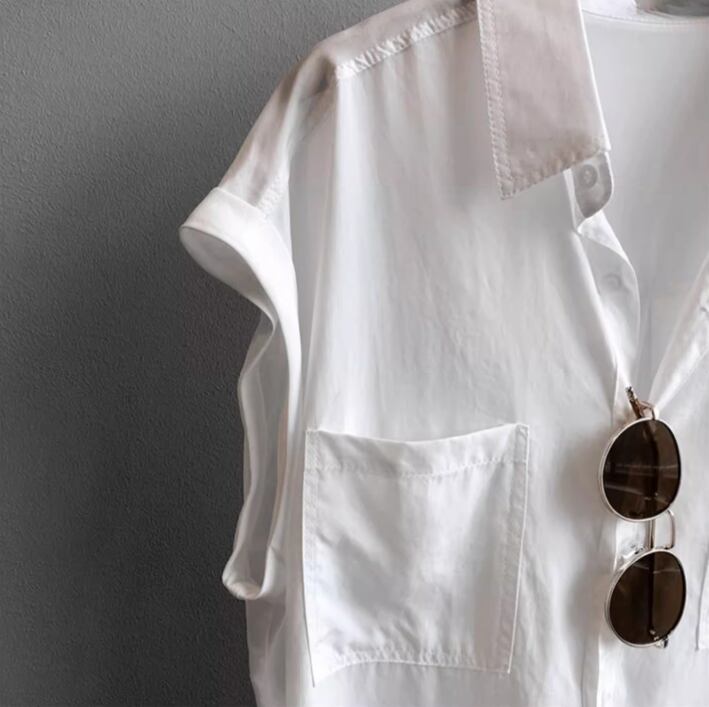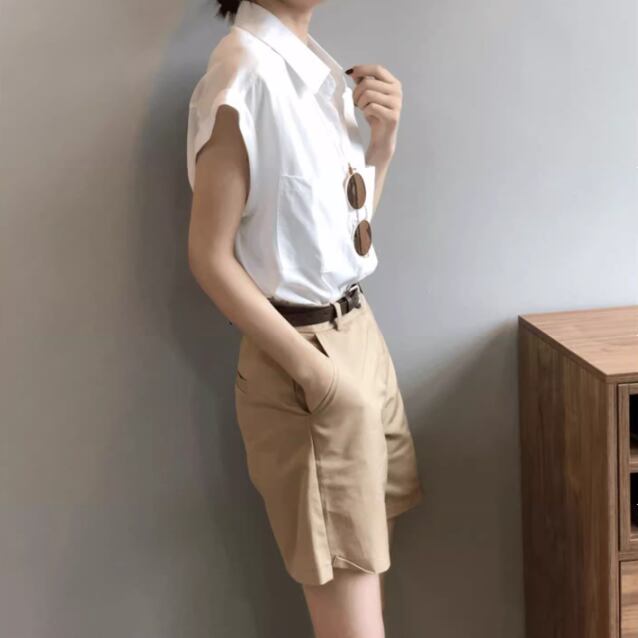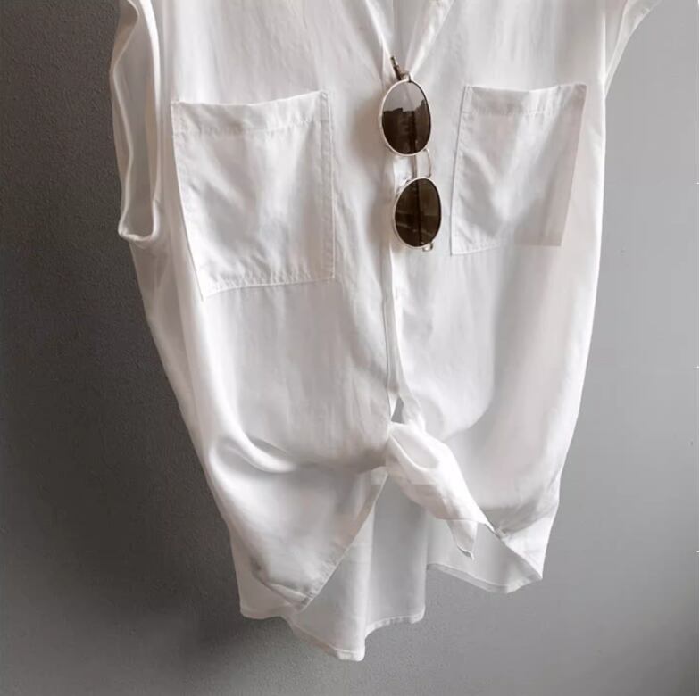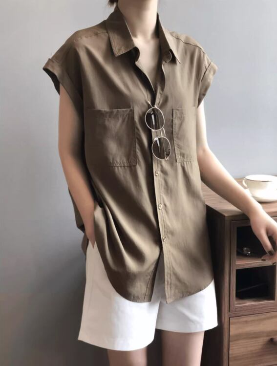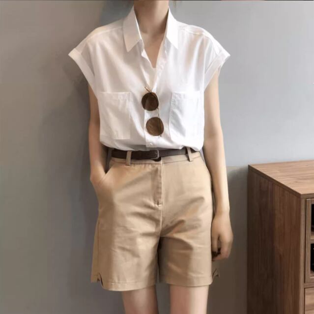 トップス シャツ レディース 袖なし ノースリーブ Vネック 襟付き ワイド ストレート ポケット ボタン 大人可愛い きれいめ シンプル カジュアル 上品 おしゃれ レトロ こなれ感 ラフ ルーズ 抜け感 キュート 都会的 ラグジュアリー クラシカル ベーシック アクティブ 無地 夏 オフィス ビジネス OL 通勤 学生 学校 通学 デート お出かけ レストラン 女子会 休日 バカンス 高原 ホテル ガーデン ショッピング カフェ ランチ会 重ね着 レイヤード M L ホワイト ブラウン ネイビー