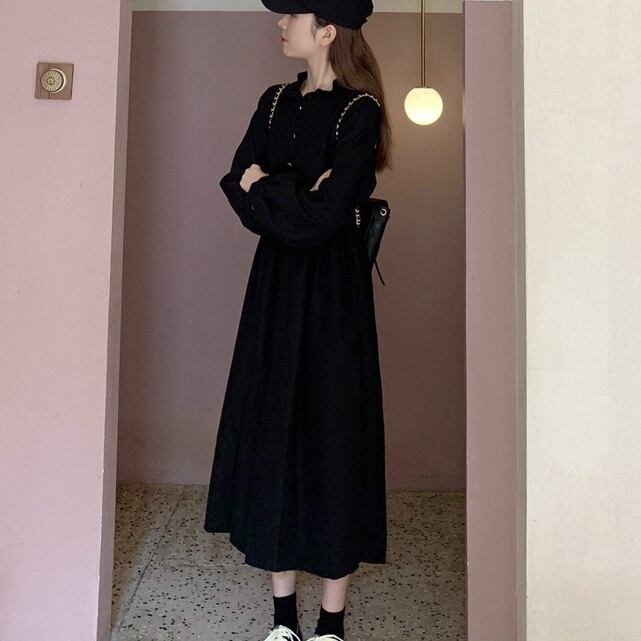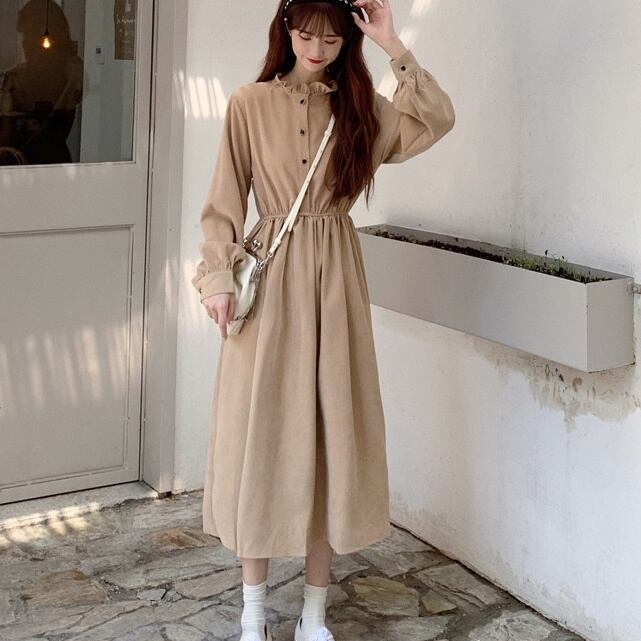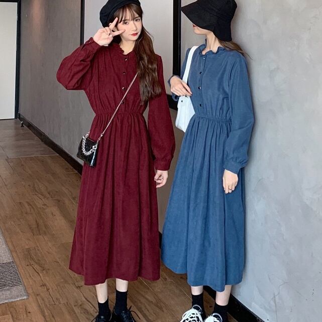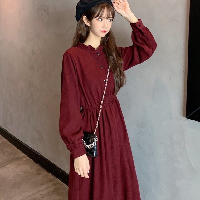 ワンピース ミモレ丈ワンピース 長袖 ウエストマーク ハーフボタン セミフレア ミモレ丈 かわいい 大人可愛い きれいめ シンプル 上品 おしゃれ かっこいい レトロ ラフ こなれ感 個性的 主役級 存在感 抜け感 キュート ナチュラル ベーシック ガーリー 無地 レディース 女性用 ママ マタニティ OL 通勤 学生 通学 デート お出かけ お泊まり イベント 女子会 休日 カフェ ショッピング レストラン 旅行 リゾート コンパ レイヤード 重ね着 普段使い 着回し 脚長 美脚 ワンサイズ