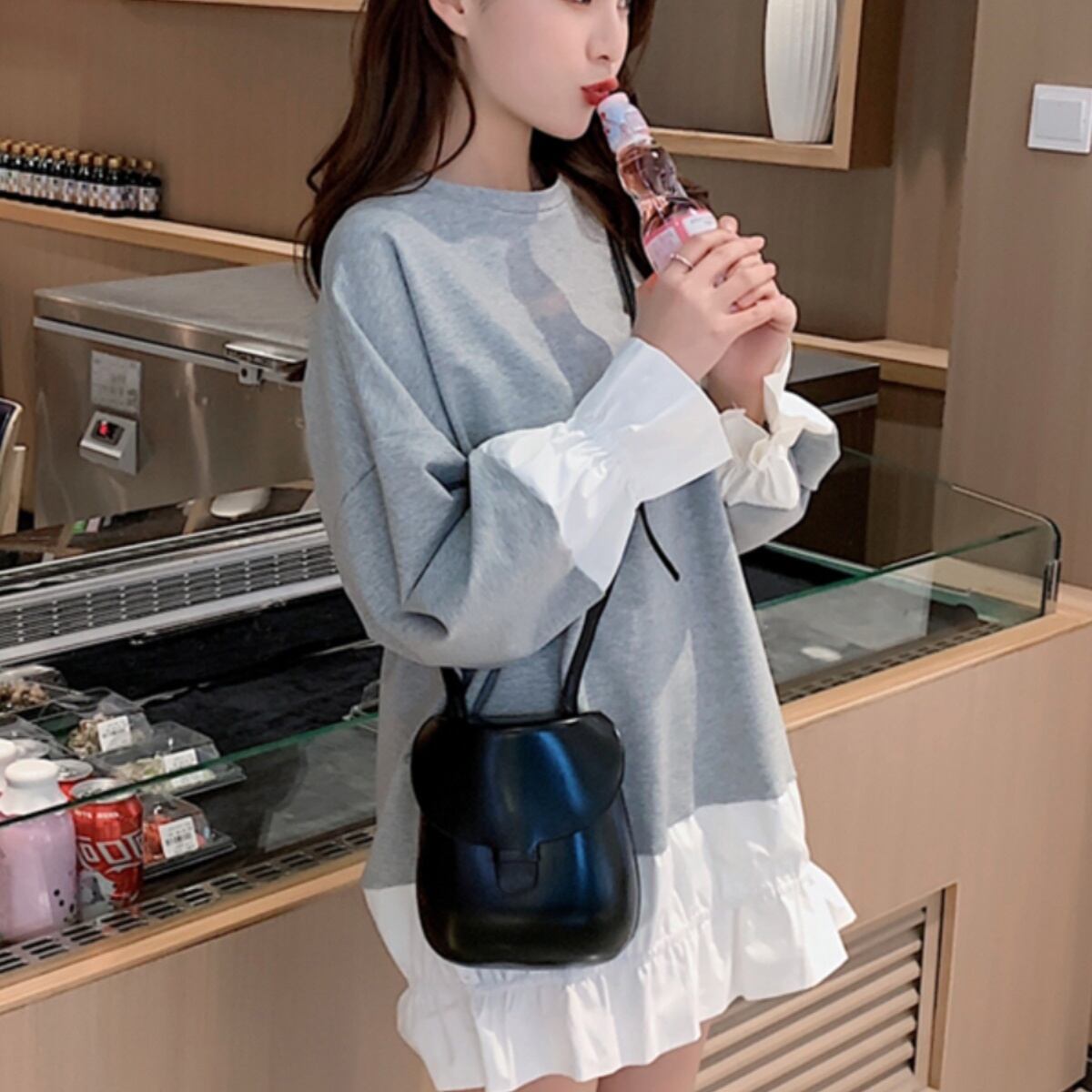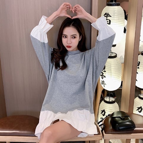 トップス トレーナー プルオーバー ミディアム丈 長袖 ラウンドネック 異素材ミックス 重ね着風 かわいい 大人可愛い きれいめ シンプル 上品 おしゃれ かっこいい レトロ ラフ ルーズ こなれ感 個性的 主役級 存在感 抜け感 秋 冬 キュート ナチュラル ベーシック ガーリー 無地 レディース 女性用 ママ OL 通勤 オフィス 学生 通学 デート お出かけ お泊まり イベント 女子会 休日 アウトドア カフェ ショッピング レストラン コンパ レイヤード 重ね着 普段使い 着回し S M L XL