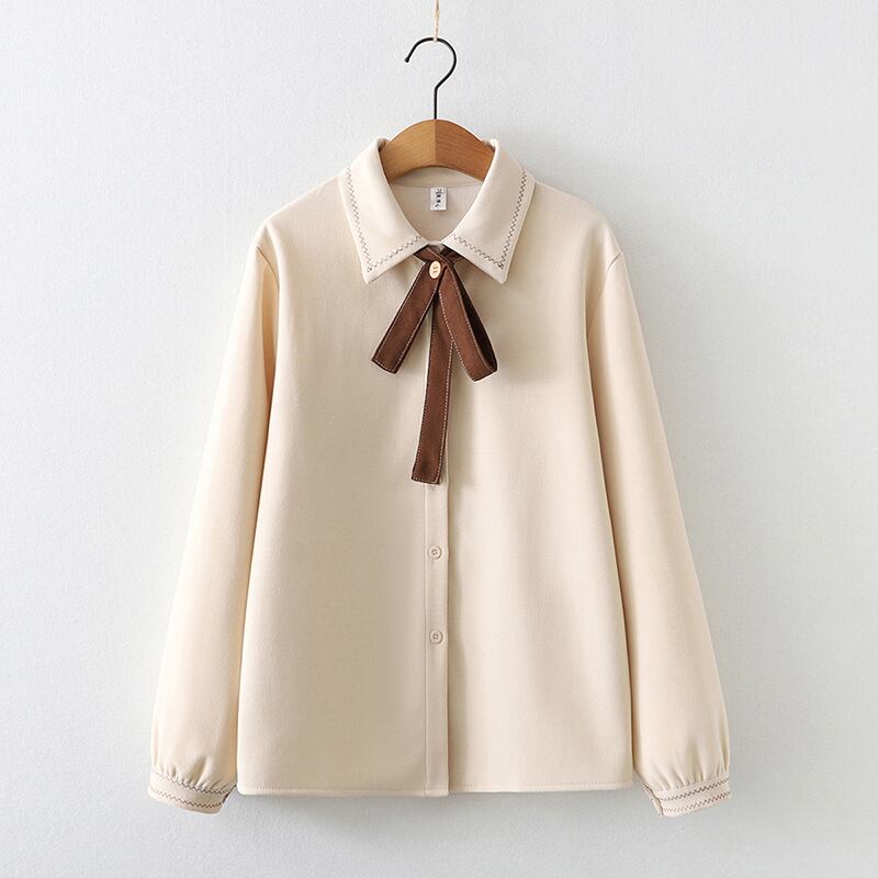 トップス シャツ ミディアム丈 長袖 襟付き リボン 前開き ボタン かわいい 大人可愛い きれいめ シンプル 上品 おしゃれ かっこいい レトロ きちんと こなれ感 個性的 主役級 存在感 抜け感 オールシーズン キュート ナチュラル ベーシック フォーマル エレガント 無地 レディース 女性用 ママ OL 通勤 オフィス ビジネス 学生 通学 デート お出かけ お泊まり イベント 女子会 休日 アウトドア カフェ ショッピング レストラン コンパ レイヤード 重ね着 普段使い 着回し S M L XL