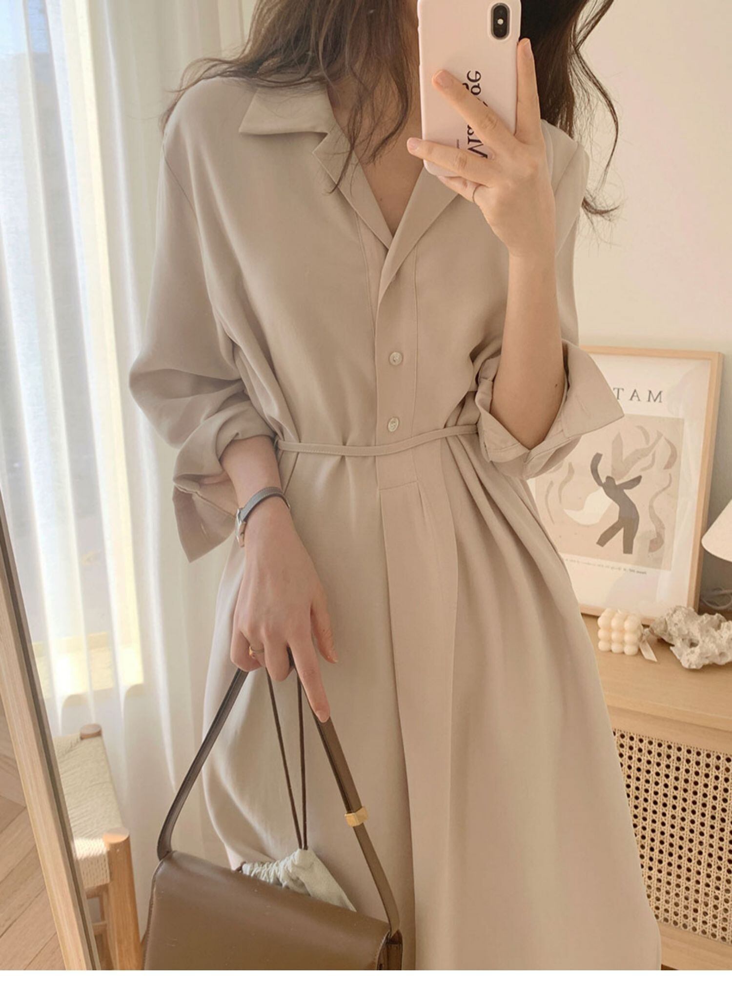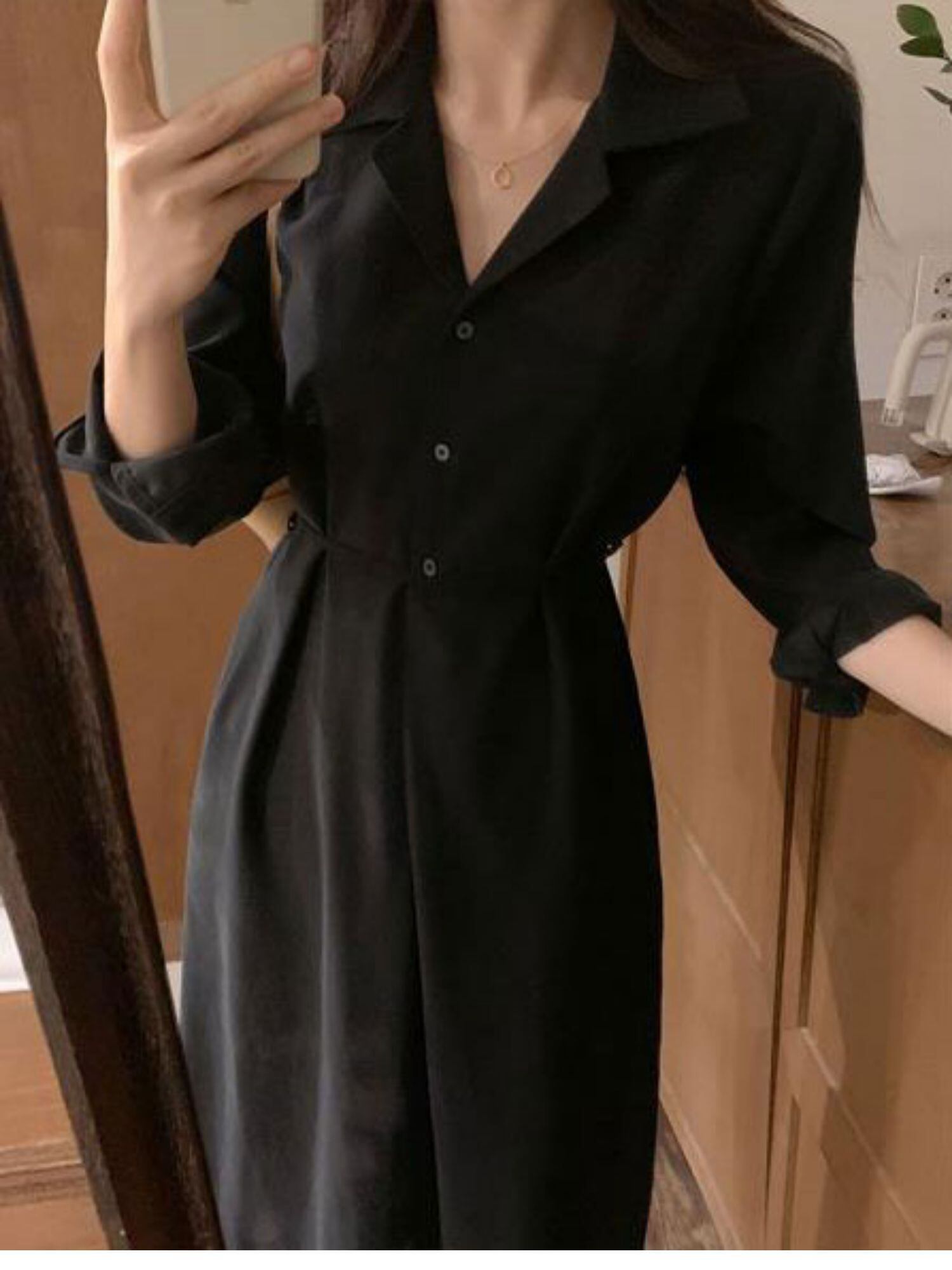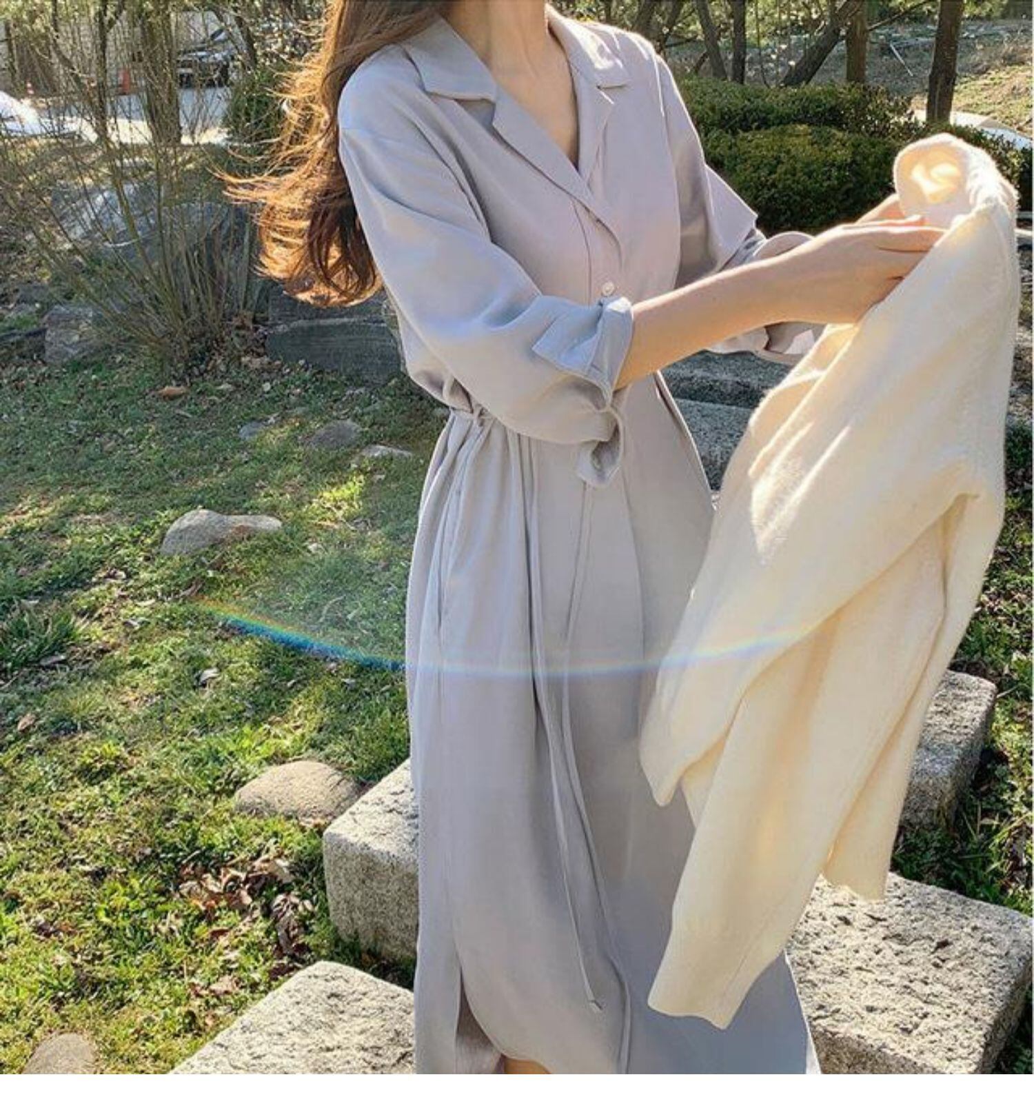 こなれ感漂うシャツワンピースは、ロング丈でレトロな雰囲気も演出。シンプルなデザインながらも、襟付きや前開きなど細部にまでこだわりました。個性的でクールな魅力を纏いたい方にもおすすめです。