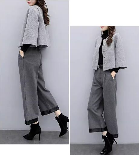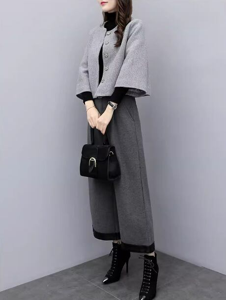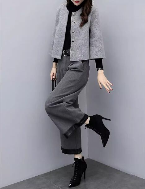 レディース ジャケット パンツ スーツ ワイドレッグパンツ 長袖 ノーカラー ストレート タック ハイウエスト ボタン 無地 秋 冬 卒業式 卒園式 OL 通勤 デート お出かけ パーティー イベント レストラン 女子会 韓国 コーデ 体型カバー 脚長 普段使い 着回し モテ トレンド 流行 インスタ映え S M L XL 2XL グレー