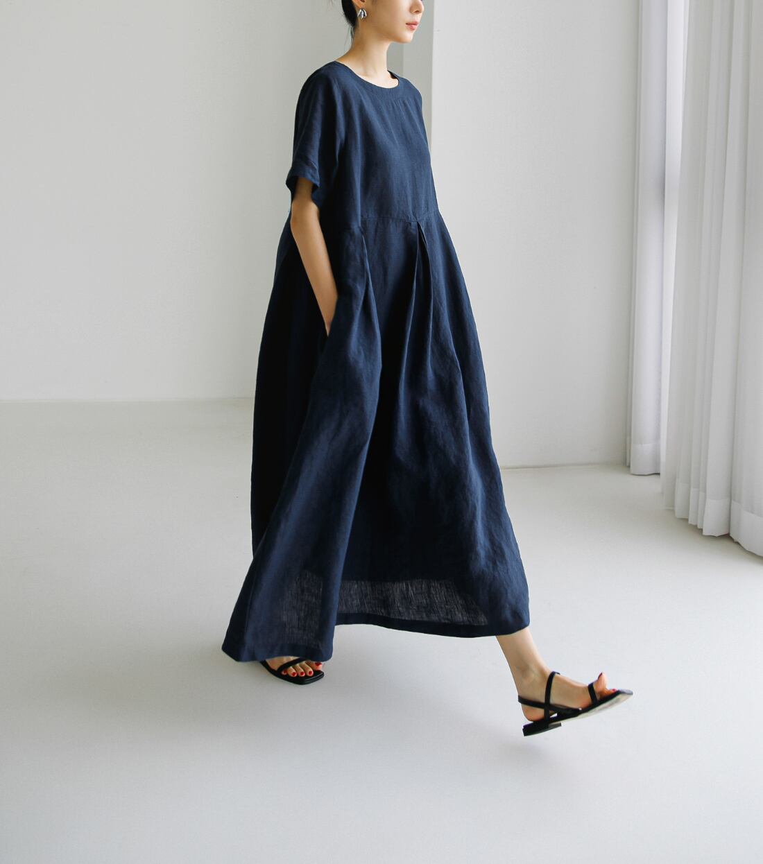 このワンピースは、自然体でいられる日常使いにピッタリ。柔らかな素材で着心地も抜群で、長時間着用してもストレスを感じることはありません。ワードローブに取り入れるだけで、おしゃれ度がぐんとアップすること間違いなしです。