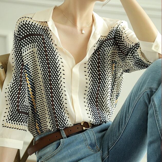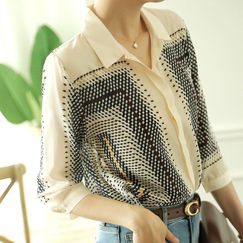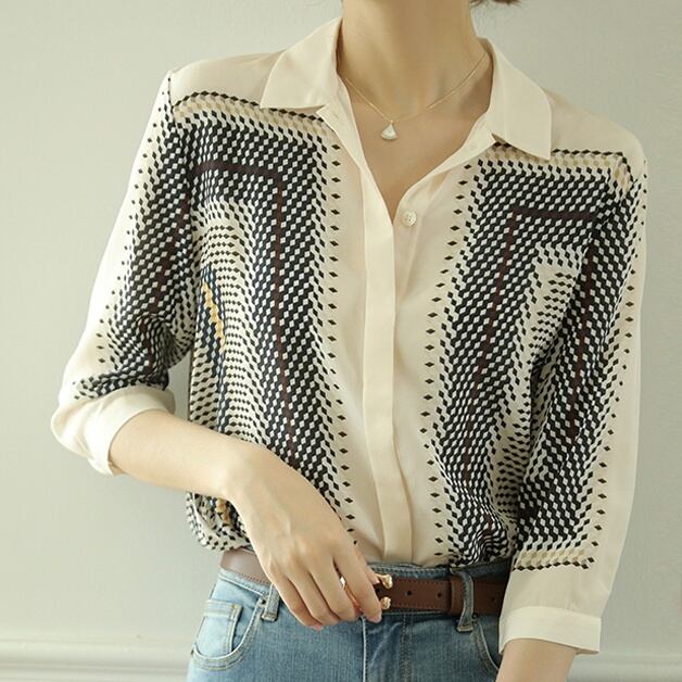 トップス シャツ シフォンシャツ ミディアム丈 7分袖 襟付き 前開き ボタン かわいい 大人可愛い きれいめ シンプル 上品 おしゃれ かっこいい レトロ きちんと こなれ感 個性的 主役級 存在感 抜け感 オールシーズン キュート ナチュラル ベーシック フォーマル エレガント 無地 レディース 女性用 ママ OL 通勤 オフィス 学生 通学 デート お出かけ お泊まり イベント 女子会 休日 アウトドア カフェ ショッピング レストラン コンパ レイヤード 重ね着 普段使い 着回し S M L XL