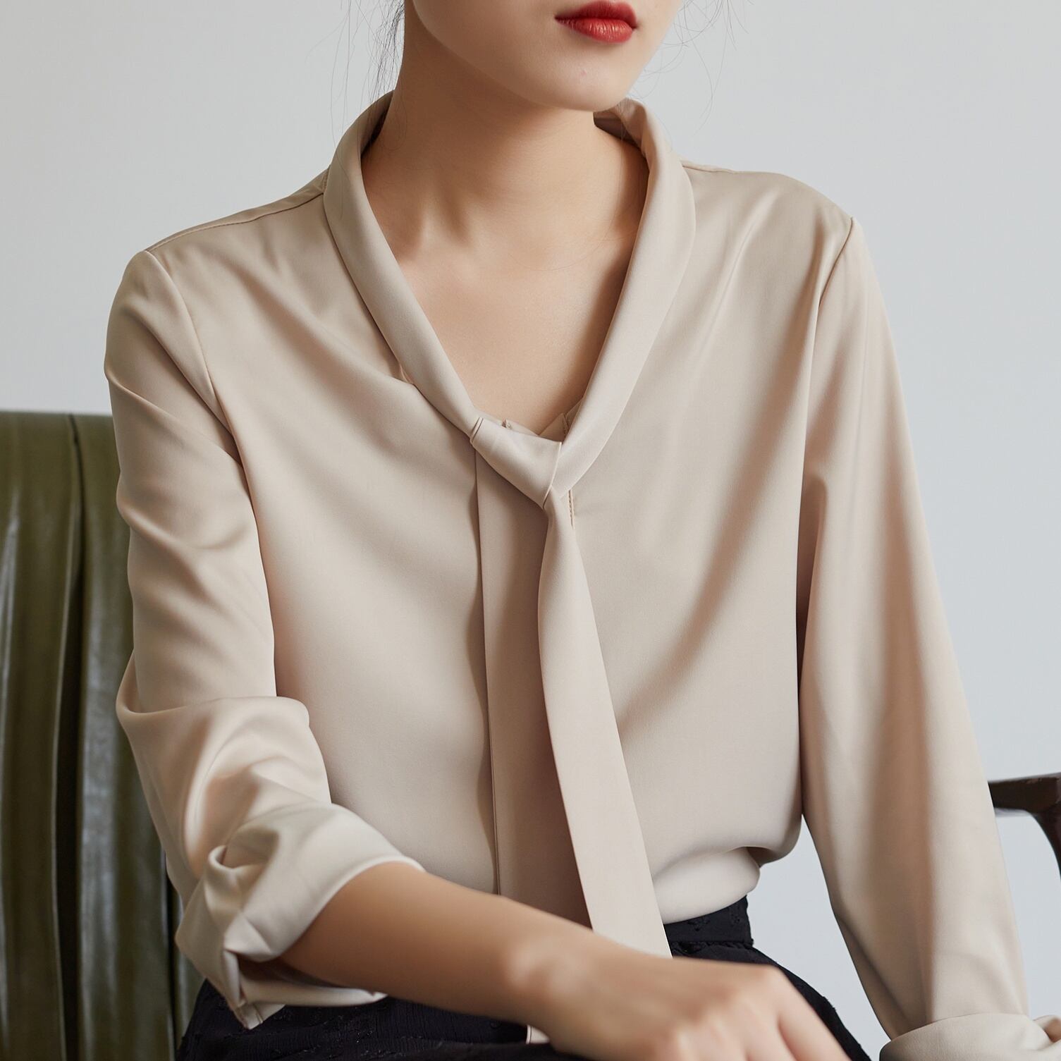 トップス シャツ シフォンシャツ プルオーバー ミディアム丈 長袖 Vネック ボウタイ かわいい 大人可愛い きれいめ シンプル 上品 おしゃれ かっこいい レトロ きちんと こなれ感 個性的 主役級 存在感 抜け感 春オールシーズン キュート ナチュラル ベーシック フォーマル エレガント 無地 レディース 女性用 ママ OL 通勤 オフィス 学生 通学 デート お出かけ お泊まり イベント 女子会 休日 アウトドア カフェ ショッピング レストラン コンパ レイヤード 重ね着 普段使い 着回し