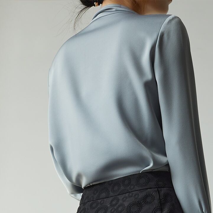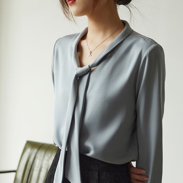 Vネックにボウタイがついたデザインは、大人可愛い雰囲気を醸し出し、女性らしさを引き立てます。