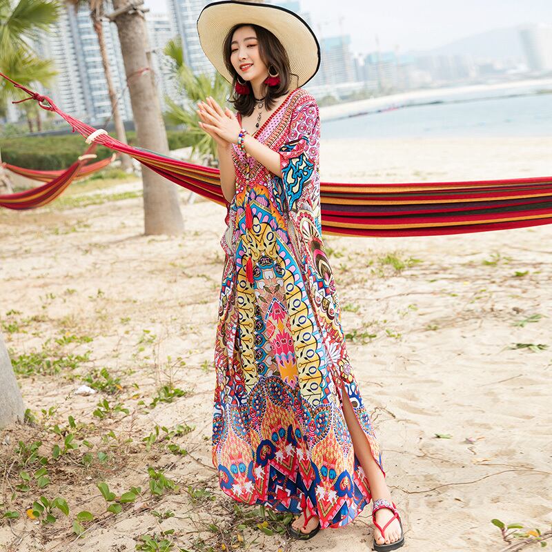 マキシ丈ワンピースの定番デザインに、エレガントなサイドスリットを取り入れた一枚。