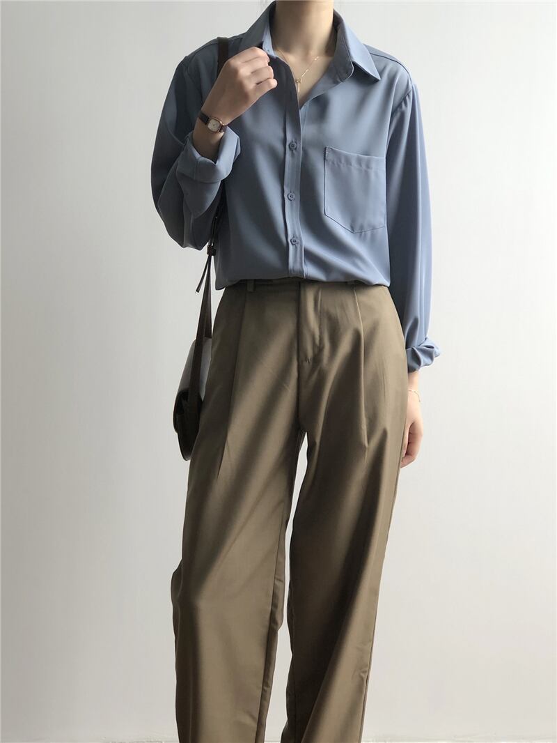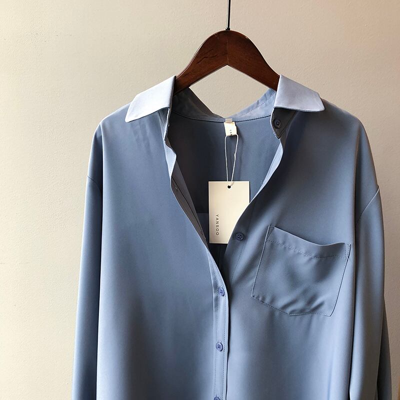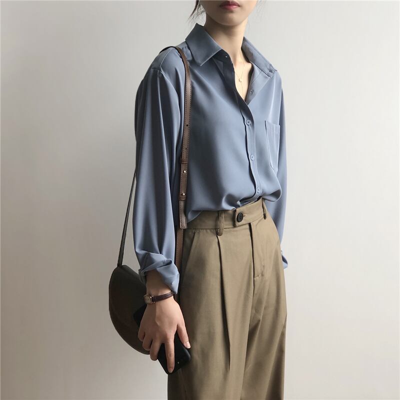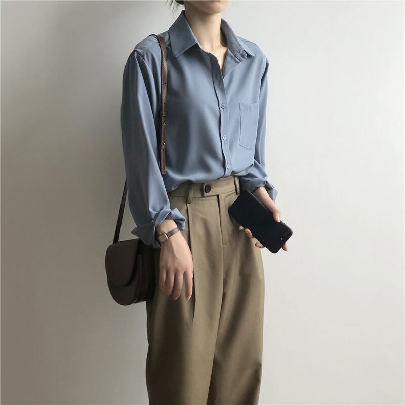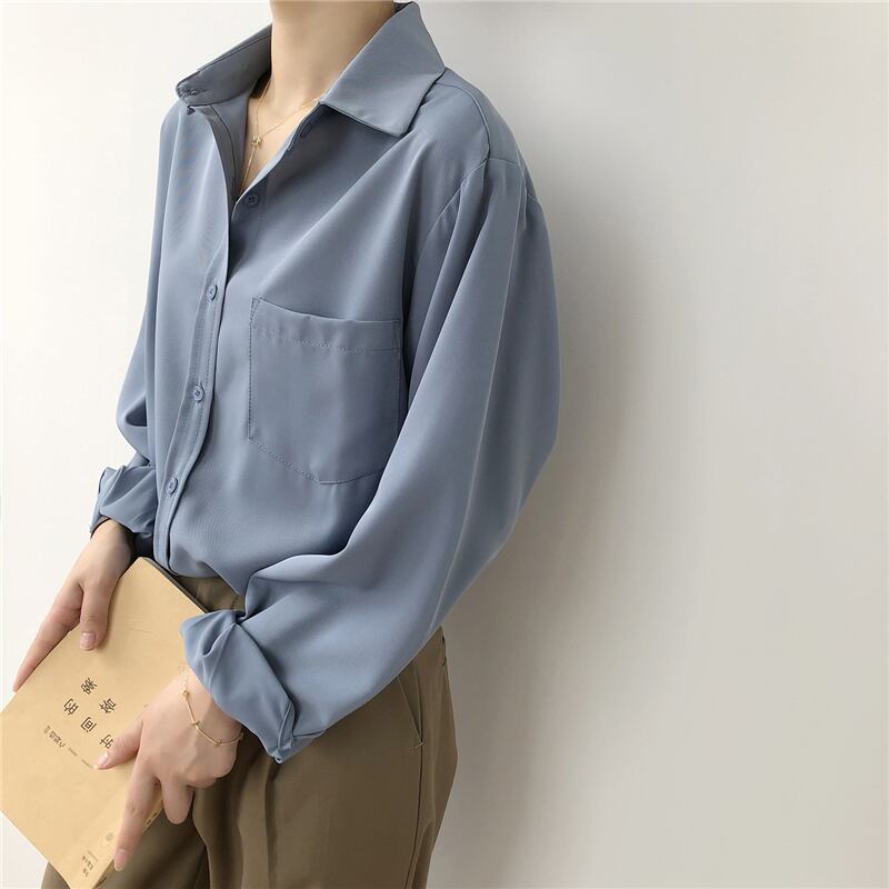 レディース トップス シャツ 長袖 ポロカラー ストレート かわいい 大人可愛い きれいめ シンプル カジュアル 上品 おしゃれ かっこいい こなれ感 ガーリー ルーズ クール エレガント クラシカル 無地 春 秋 通勤 学生 学校 デート お出かけ ショッピング 韓国 コーデ 普段使い 着回し モテ トレンド 流行 インスタ映え S M L ゆったり ホワイト ブラック ブルー