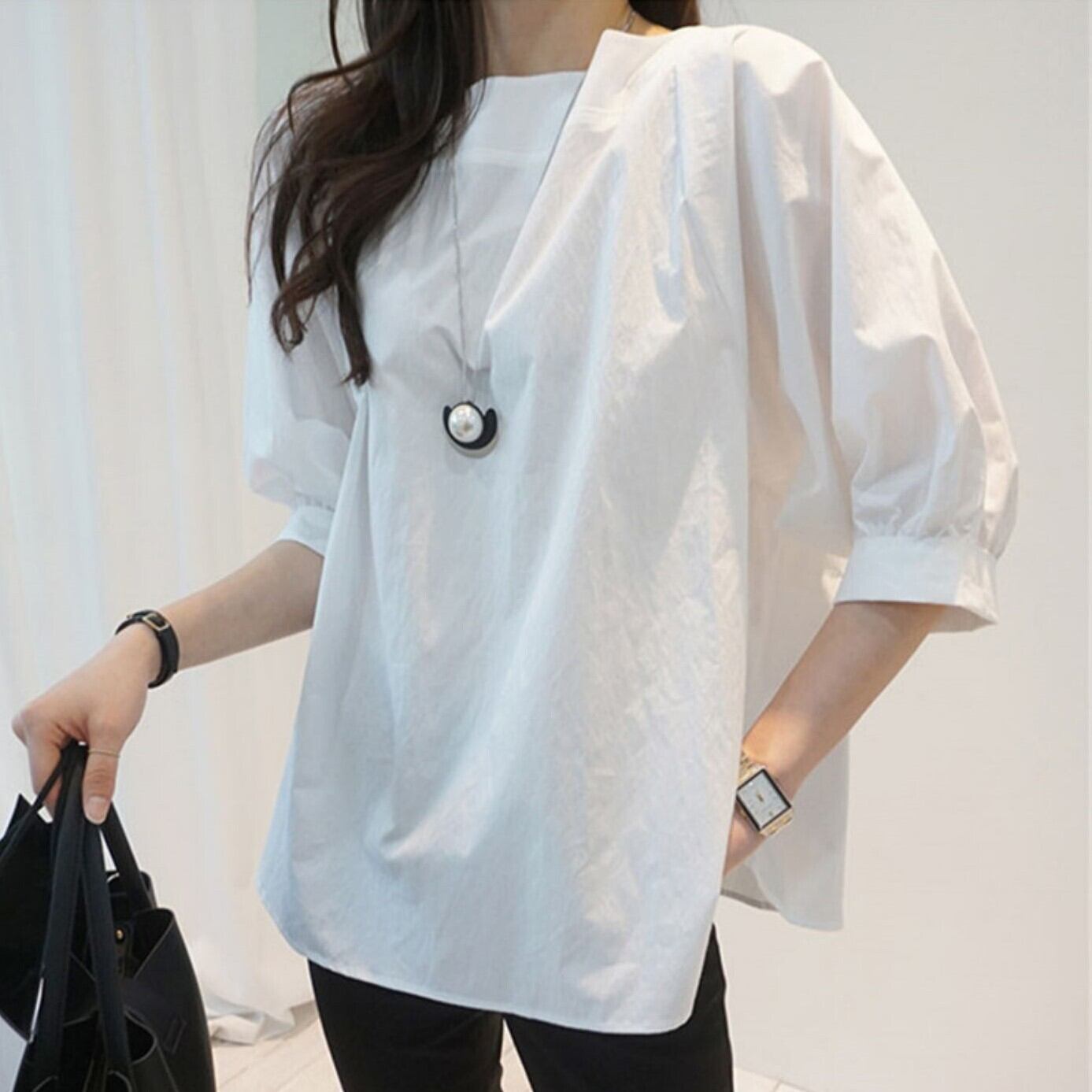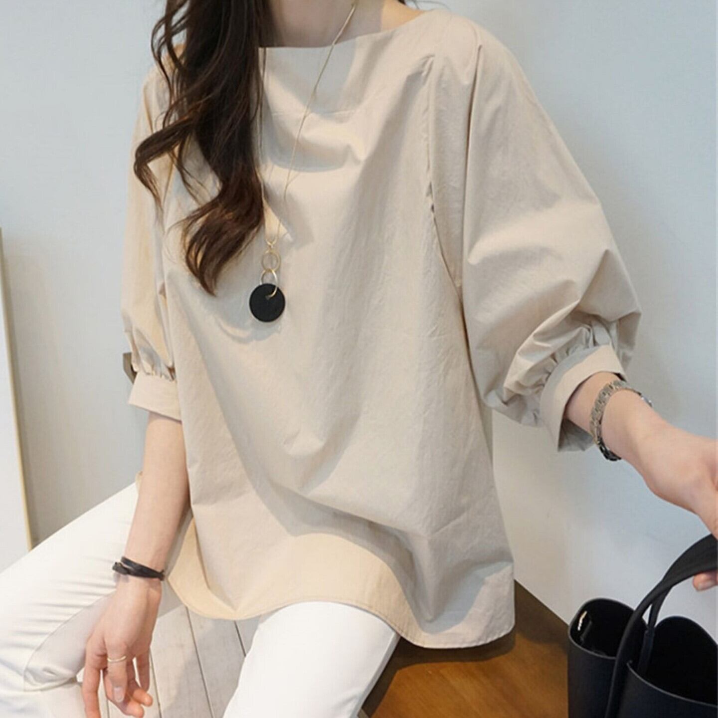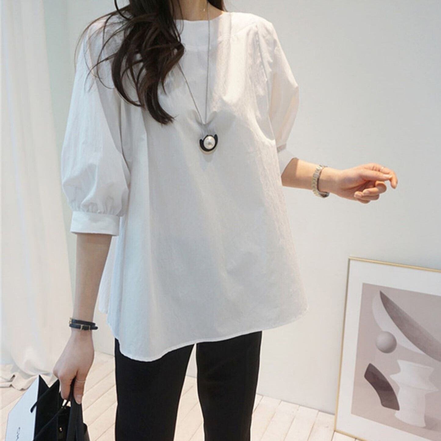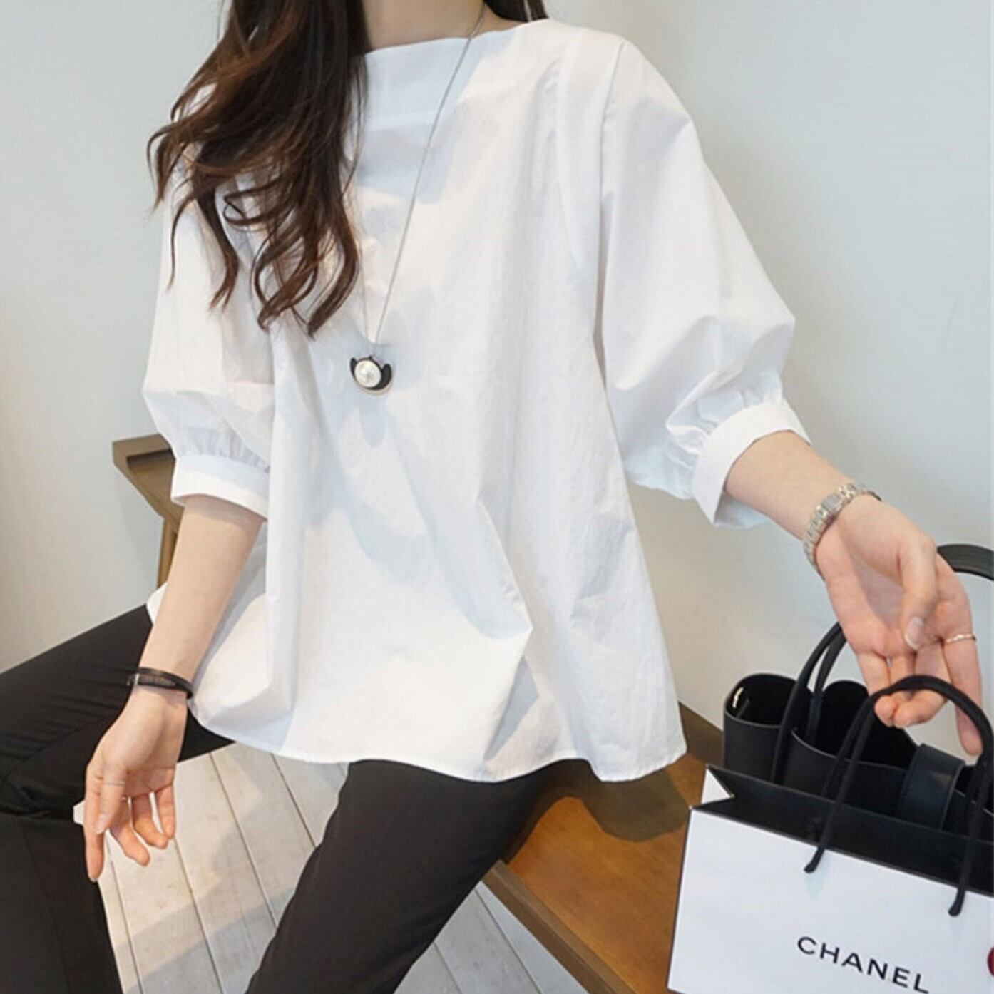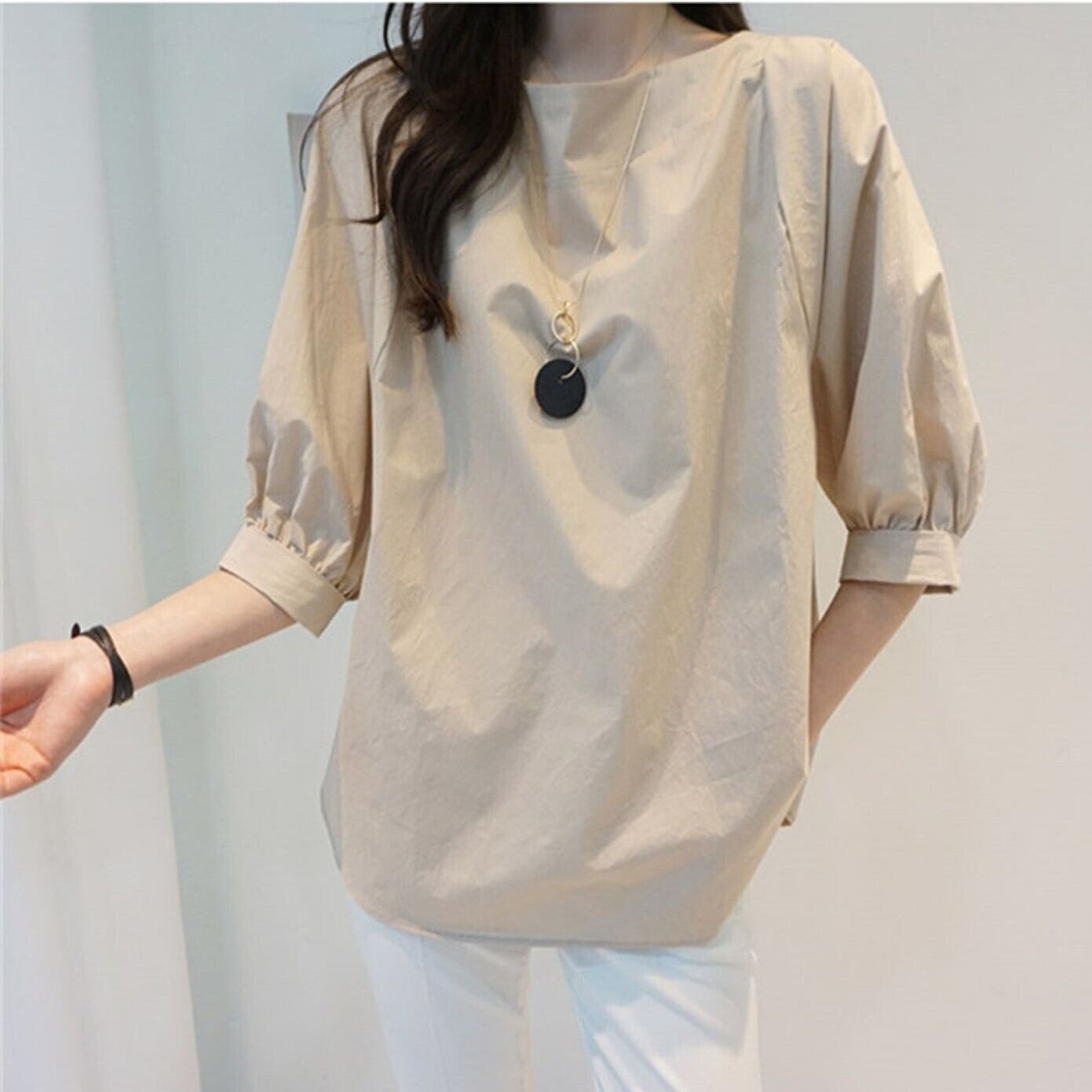 レディース トップス カットソー プルオーバー 7分袖 パフスリーブ ラウンドネック ストレート コットン かわいい 大人可愛い きれいめ シンプル カジュアル 上品 おしゃれ ガーリー エレガント 無地 春 夏 通勤 学生 学校 デート お出かけ ショッピング 韓国 コーデ 普段使い 着回し モテ トレンド 流行 インスタ映え S M L XL ゆったり ホワイト ベージュ