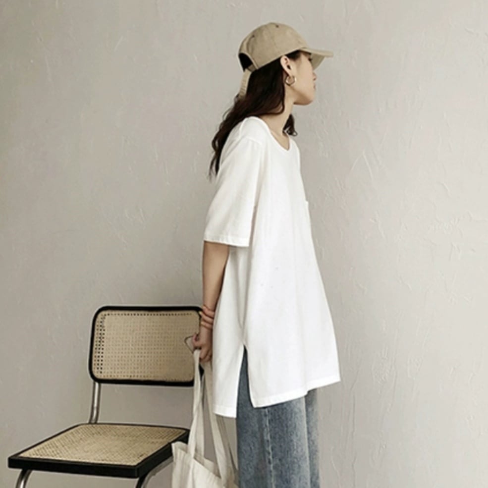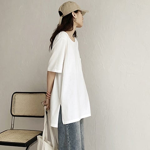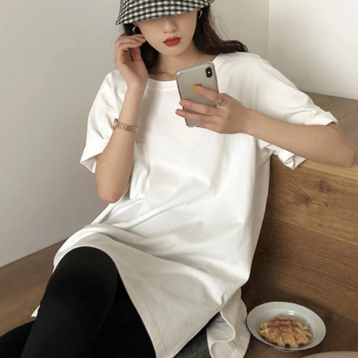 トップス Tシャツ カットソー 白Tシャツ プルオーバー ミディアム丈 半袖 ラウンドネック かわいい 大人可愛い きれいめ シンプル 上品 おしゃれ かっこいい レトロ きちんと こなれ感 個性的 主役級 存在感 抜け感 オールシーズン キュート ナチュラル ベーシック メンズライク 無地 レディース 女性用 OL 通勤 オフィス 学生 通学 デート お出かけ お泊まり イベント 女子会 休日 アウトドア カフェ ショッピング レストラン コンパ レイヤード 重ね着 普段使い 着回し S M L XL