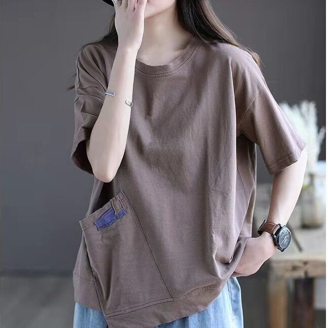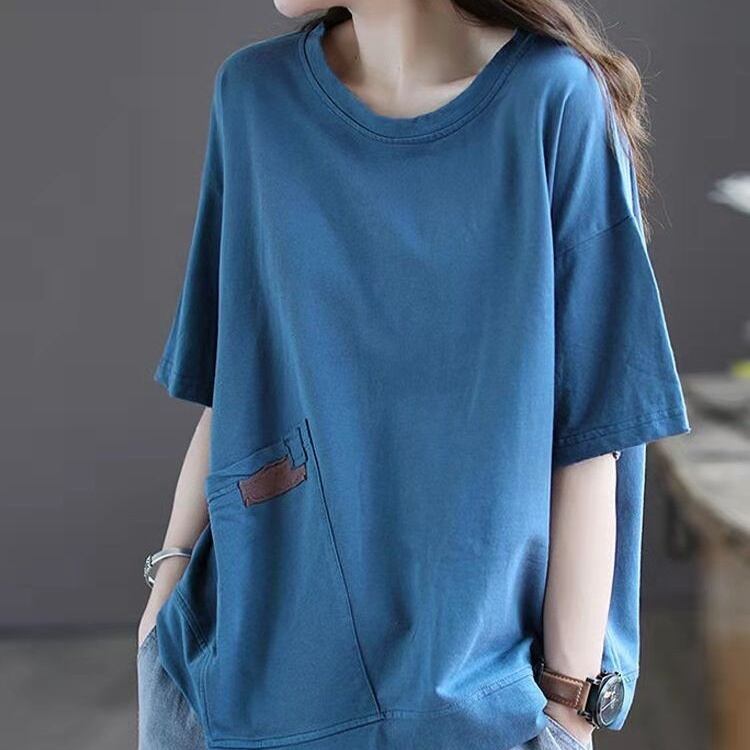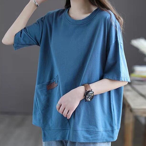 トップス Tシャツ カットソー プルオーバー ミディアム丈 半袖 ラウンドネック デザインポケット かわいい 大人可愛い きれいめ シンプル 上品 おしゃれ かっこいい レトロ きちんと こなれ感 個性的 主役級 存在感 抜け感 オールシーズン ナチュラル ベーシック メンズライク 無地 レディース 女性用 OL 通勤 オフィス 学生 通学 デート お出かけ お泊まり イベント 女子会 休日 アウトドア カフェ ショッピング レストラン コンパ レイヤード 重ね着 普段使い 着回し M L XL 2XL