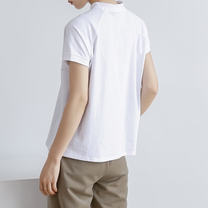 トップス Tシャツ カットソー プルオーバー ミディアム丈 半袖 ハイネック サイドスリット かわいい 大人可愛い きれいめ シンプル 上品 おしゃれ かっこいい レトロ きちんと こなれ感 個性的 主役級 存在感 抜け感 オールシーズン キュート ナチュラル ベーシック メンズライク 無地 レディース 女性用 ママ OL 通勤 オフィス 学生 通学 デート お出かけ お泊まり イベント 女子会 休日 アウトドア カフェ ショッピング レストラン コンパ レイヤード 重ね着 普段使い 着回し M L
