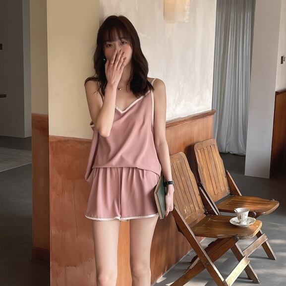 キャミソールとショートパンツの組み合わせは、シンプルかつおしゃれなルームウエアとして、お部屋での過ごし方に華やかさをプラスしてくれます。