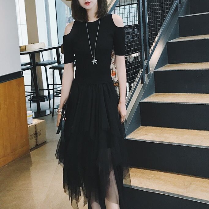 シースルーで透け感のあるシアー素材が大人可愛い印象を与え、アシンメトリーなデザインが個性的な着こなしを演出します。