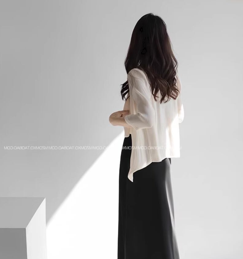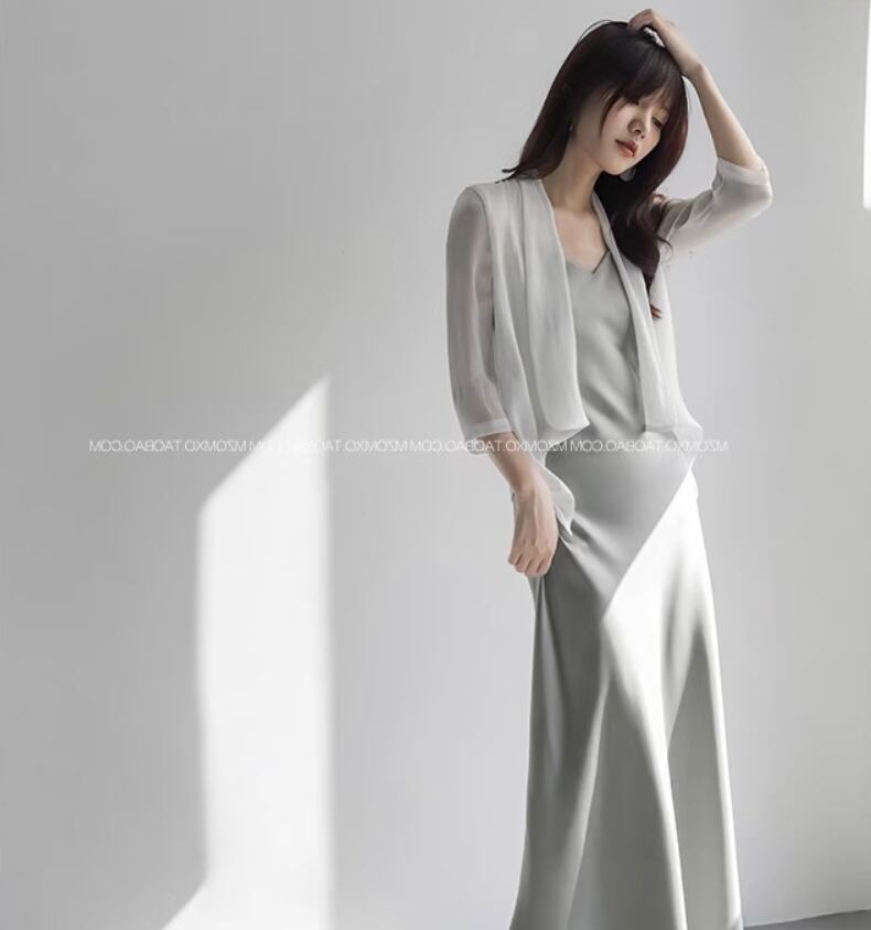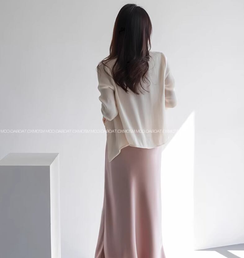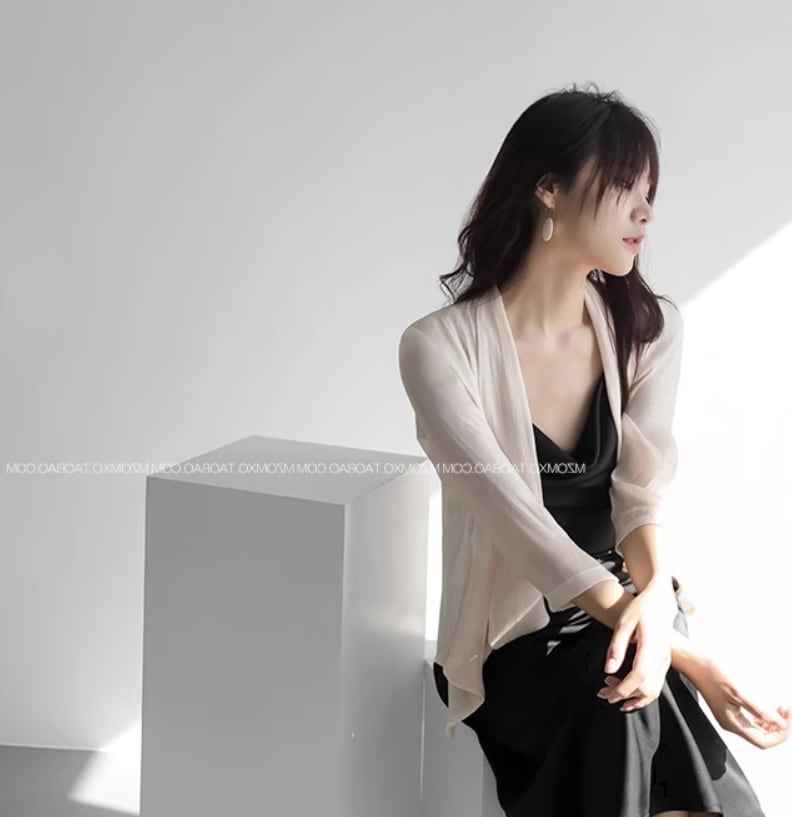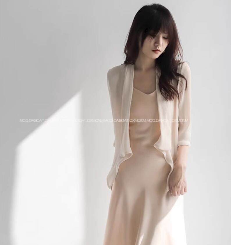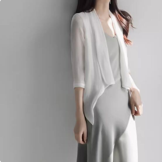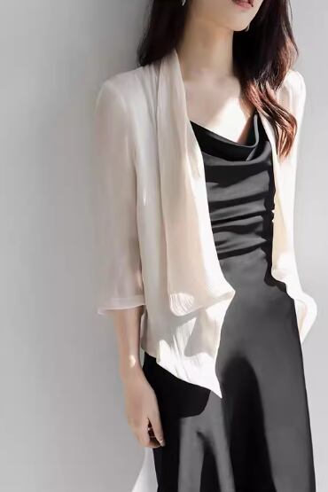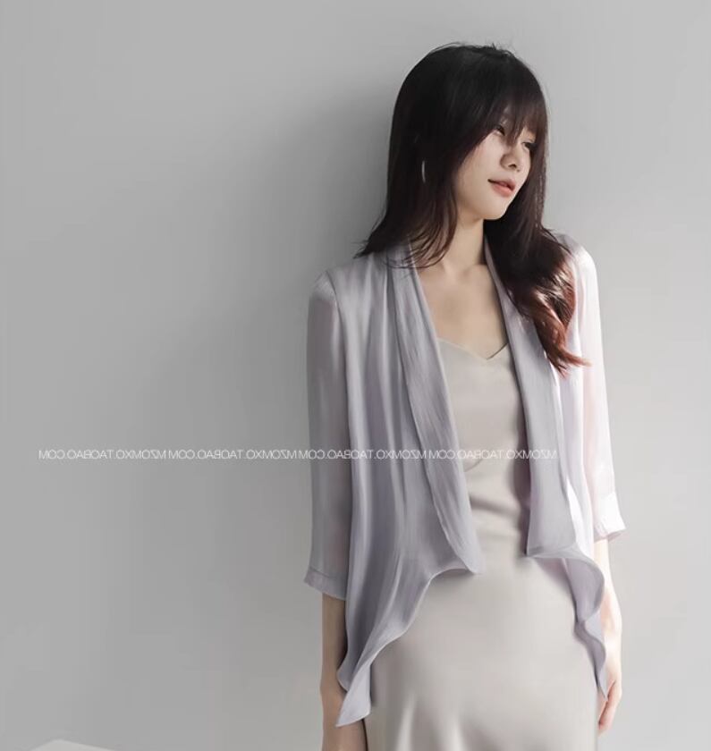 とろみのあるシフォン生地がエレガントな前開きカーディガン