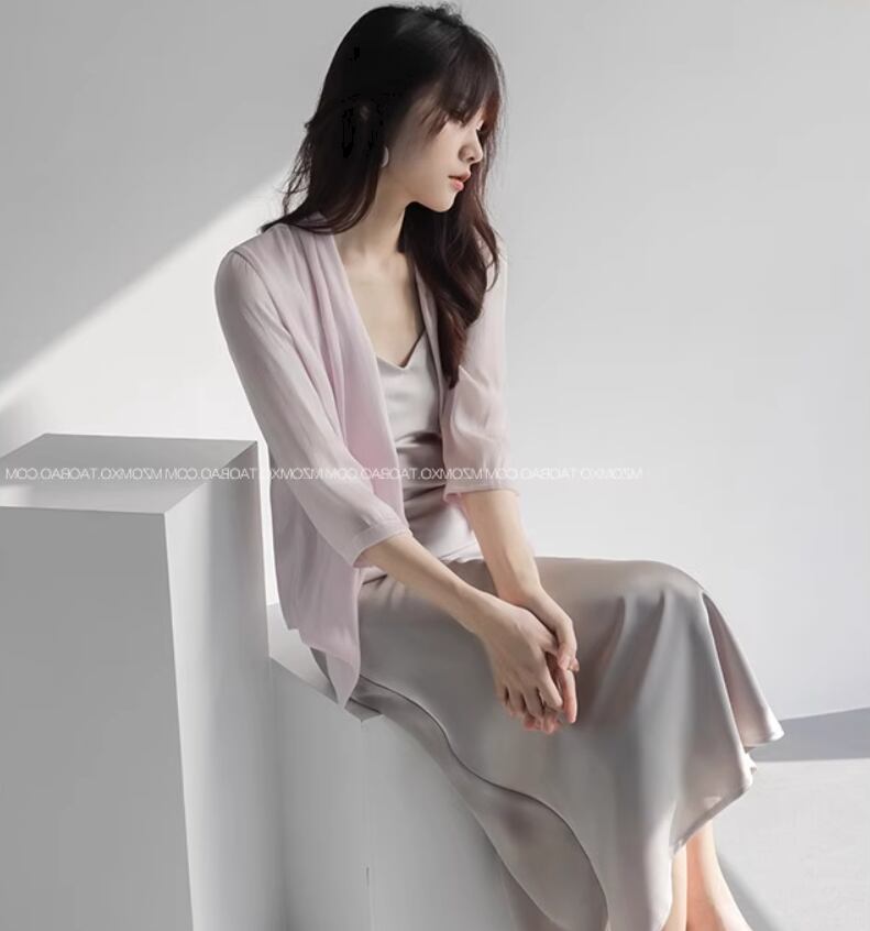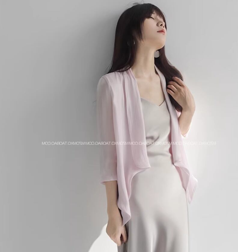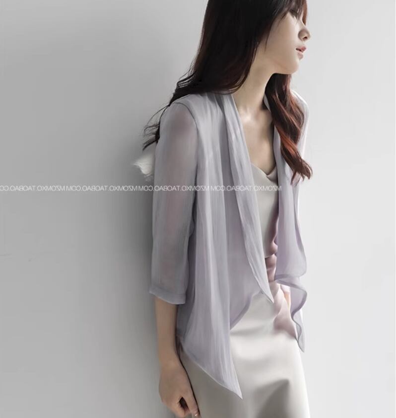 トップス カーディガン 上着 袖あり 7分袖 七分袖 シフォン 前開き 透け感 シースルー 薄手 大人可愛い きれいめ シンプル 大人 上品 おしゃれ お洒落 大人女子 こなれ感 エレガント とろみ感 無地 春 夏 20代 30代 40代 レディース 女性用 お出かけ 休日 旅行 着回し 普段使い 重ね着 S M L 白 ホワイト アプリコット ラベンダー グレーパープル