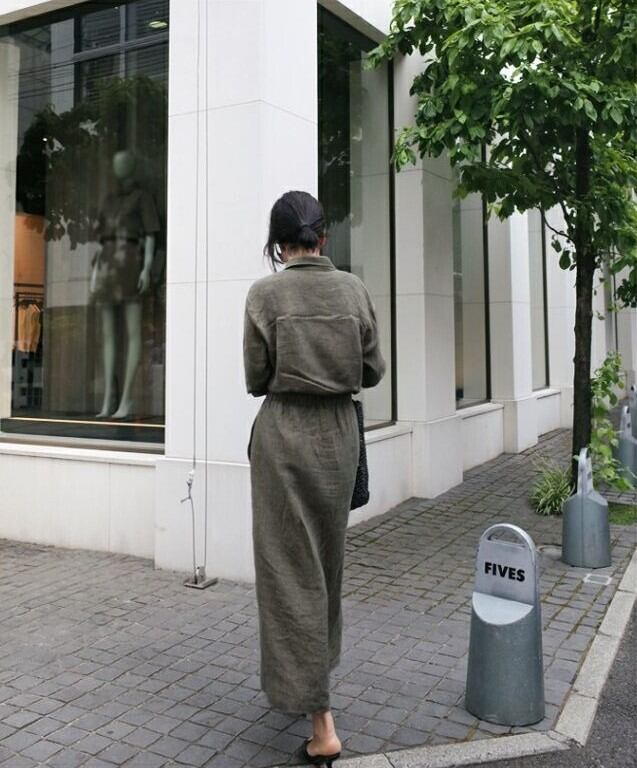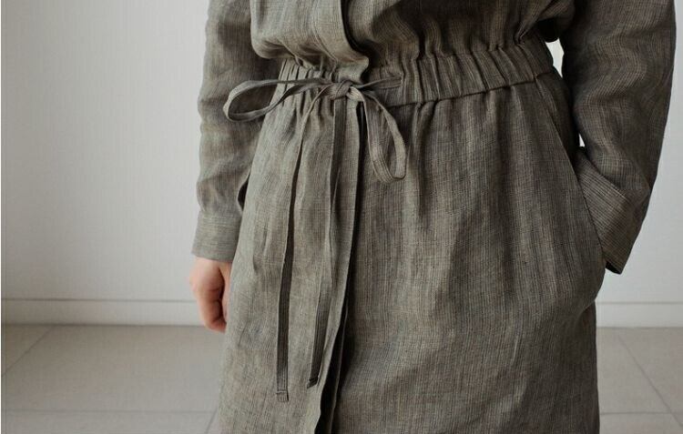 襟付きで上品さも演出され、隠しボタンやスリット、ウエストマークといった細部へのこだわりも満載。