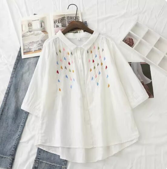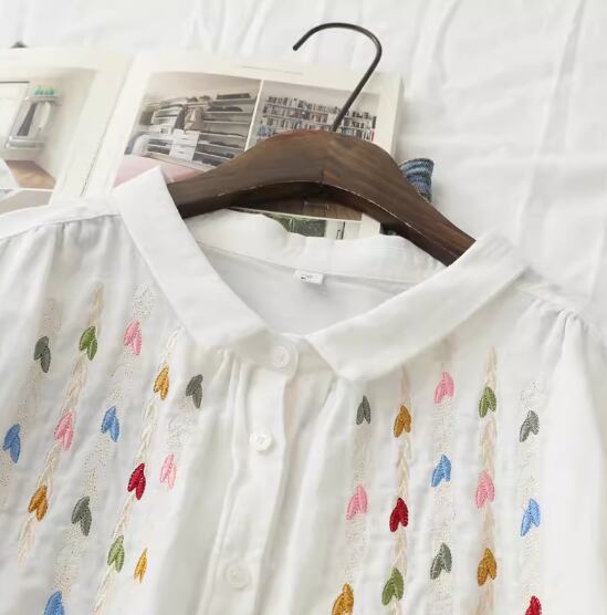 トップス シャツ ブラウス 白シャツ 白トップス 袖あり 半袖 襟付き 刺繍 透け感 綿 かわいい カジュアル レトロ 個性的 無地 春 夏 10代 20代 30代 40代 レディース 女性用 お出かけ 休日 着回し 普段使い M 白 ホワイト