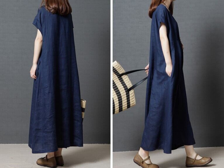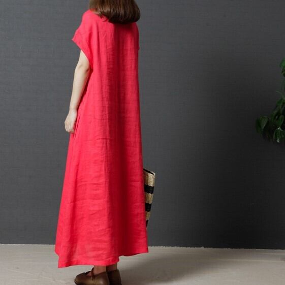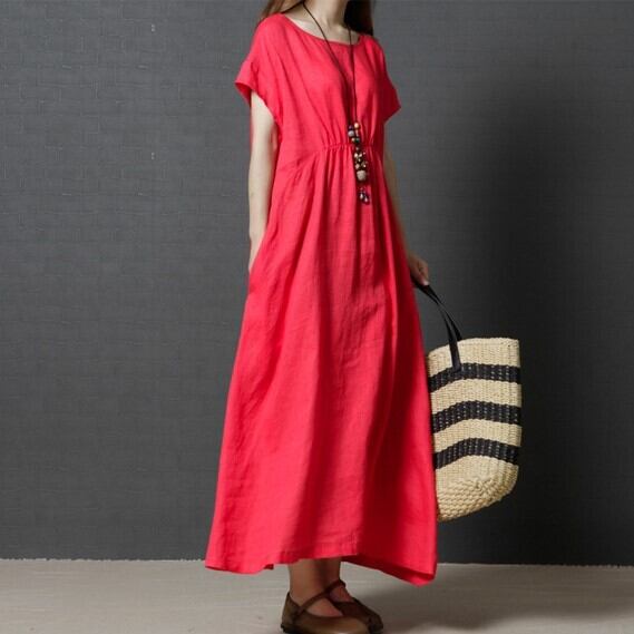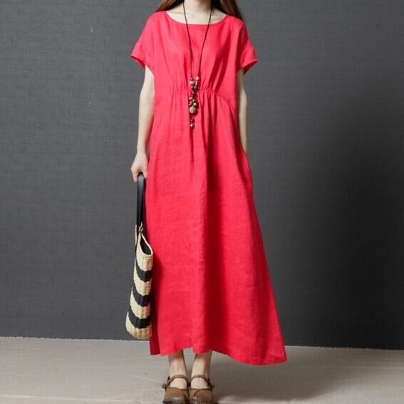 レディース ワンピース ロングスカート ロング 半袖 ラウンドネック ストレート Aライン ウエストマーク ハイウエスト リネン コットン かわいい 大人可愛い きれいめ シンプル カジュアル おしゃれ アジアン ラフ エレガント 無地 夏 通勤 学生 学校 通学 デート お出かけ リゾート レストラン ショッピング 韓国 コーデ 楽ちん 体型カバー 普段使い 着回し モテ トレンド 流行 インスタ映え M L XL 2XL ゆったり レッド ネイビー