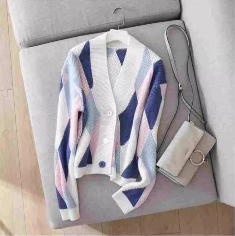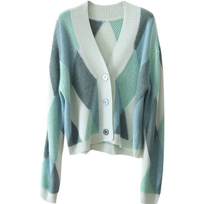 カーディガン レディース ショート 長袖 ボリューム袖 ドロップショルダー 萌袖 Vネック ワイド 前開き ボタン 配色 ニット かわいい 大人可愛い きれいめ カジュアル 上品 おしゃれ ラフ ガーリー ルーズ 存在感 ラブリー キュート クラシカル ベーシック 格子柄 秋 冬 オフィス OL 通勤 学生 通学 デート お出かけ 旅行 女子会 休日 ホテル ショッピング カフェ ランチ会 重ね着 お揃い 双子 コーデ 脚長 普段使い 着回し S M L XL ゆったり ゆる ピンク ブルー グリーン