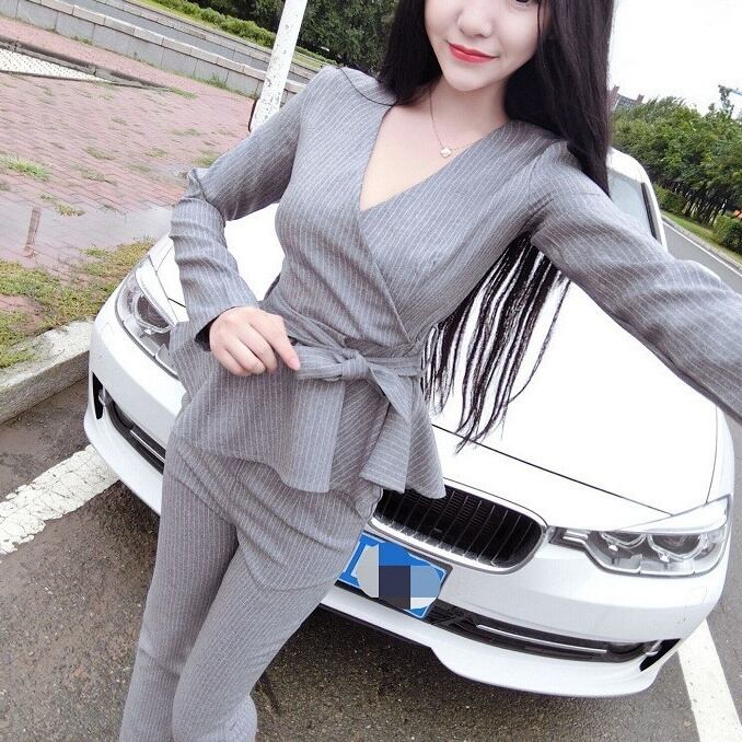 2点セット セットアップ トップス 長袖 深Vネック ウエストマーク ショート丈 ロングパンツ かわいい 大人可愛い きれいめ シンプル 上品 おしゃれ かっこいい レトロ きちんと こなれ感 個性的 主役級 存在感 抜け感 オールシーズン キュート ナチュラル ベーシック ストライプ柄 レディース 女性用 ママ OL 通勤 オフィス 学生 通学 デート お出かけ お泊まり イベント 女子会 休日 アウトドア カフェ ショッピング レストラン コンパ レイヤード 重ね着 普段使い 着回し S M L