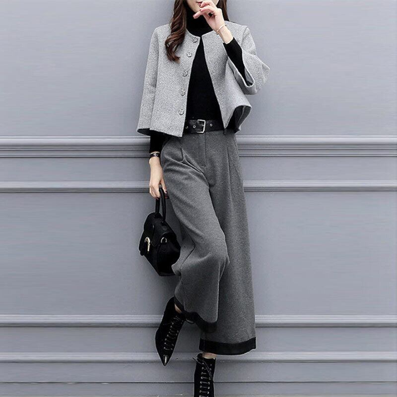 2点セット セットアップ トップス ショート丈 ジャケット ノーカラー 前開き ボタン アンクルパンツ ポケット かわいい 大人可愛い きれいめ シンプル 上品 おしゃれ かっこいい レトロ きちんと こなれ感 個性的 主役級 存在感 抜け感 秋 冬 キュート ナチュラル ベーシック 無地 フォーマル レディース 女性用 ママ OL 通勤 オフィス 学生 通学 デート お出かけ お泊まり イベント 女子会 休日 アウトドア カフェ ショッピング レストラン コンパ 普段使い 着回し S M L XL